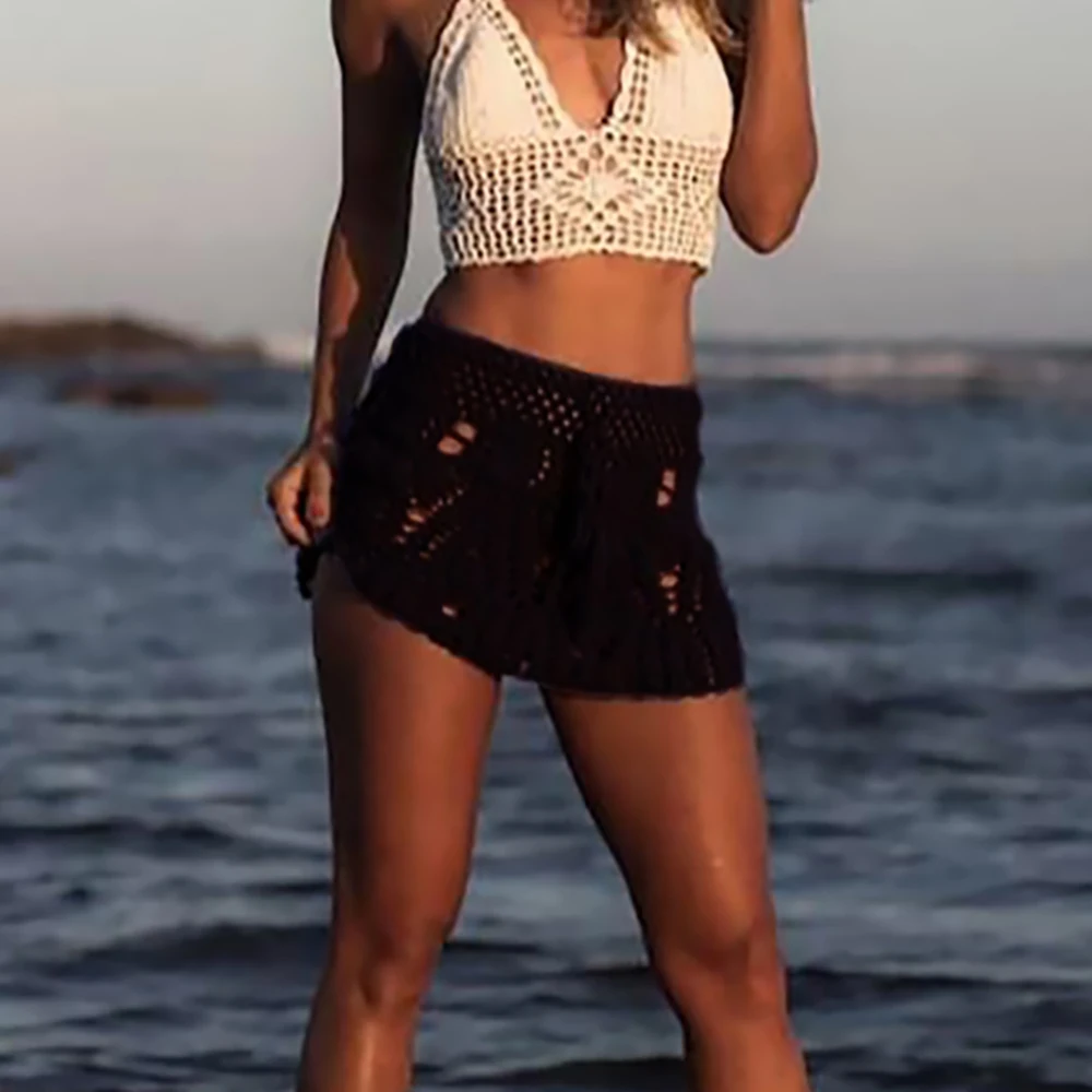 Women Summer Beach Crochet Skirt Cover Up Swimwear Bathing Suit Wrap Mini Knit Skirts One Size