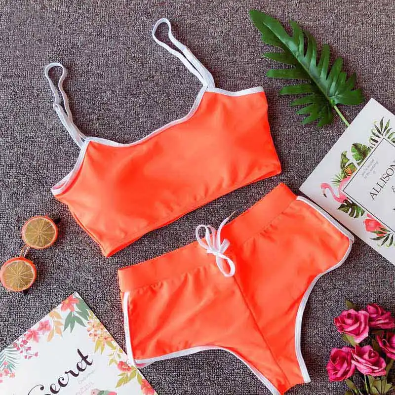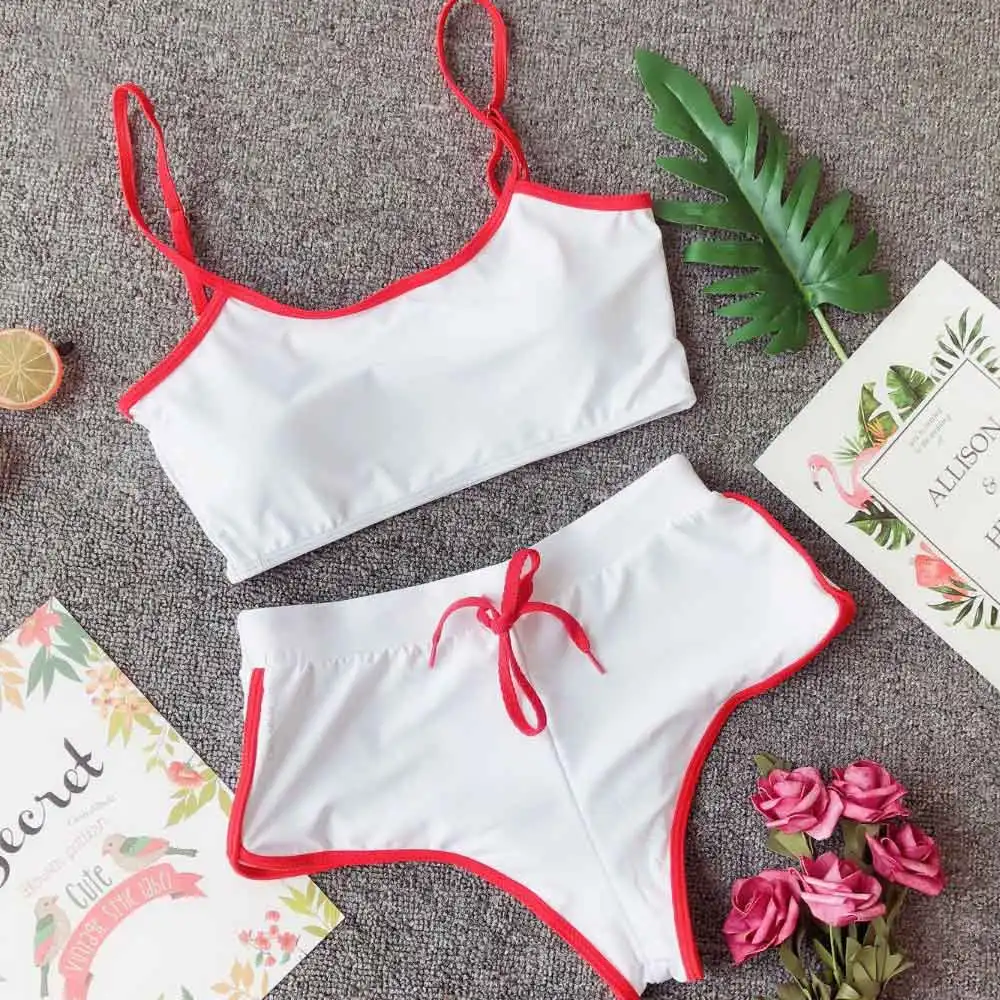 | 2020 New Sexy Swimwear Solid Bikini Women Swimsuit Bandeau Bikinis Set Pants Adjust Bathing Suit Tankini Shorts Sport Biquini |