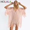 2020 Sexy Lace Hollow Crochet Beach Cover Up Women Bikini Cover Up Beach Dress Tunics Swimsuit Bathing Suits Cover-Up Beach wear