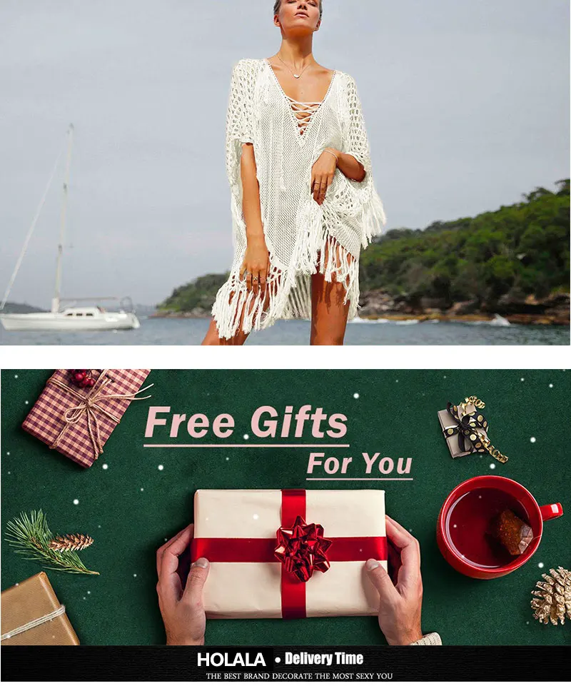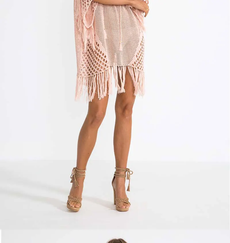 | 2020 Sexy Crochet Beach Cover Up Halter Summer Beach Dress Cotton Swimwear Cover Up Solid Robe De Plage Tunic Bikini Covers |