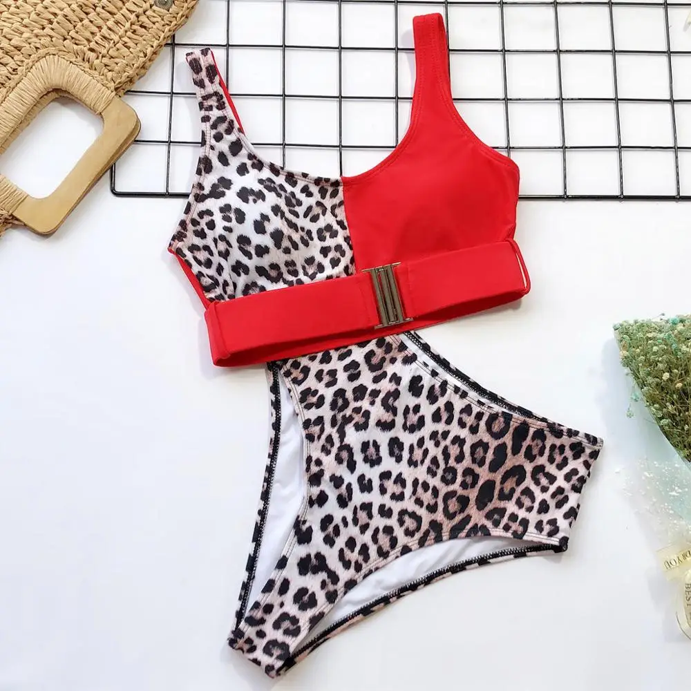 | Leopard print bikini set high waist swimsuit female Summer bathing suit Push up bikini 2020 bathing suit Patchwork biquini new |