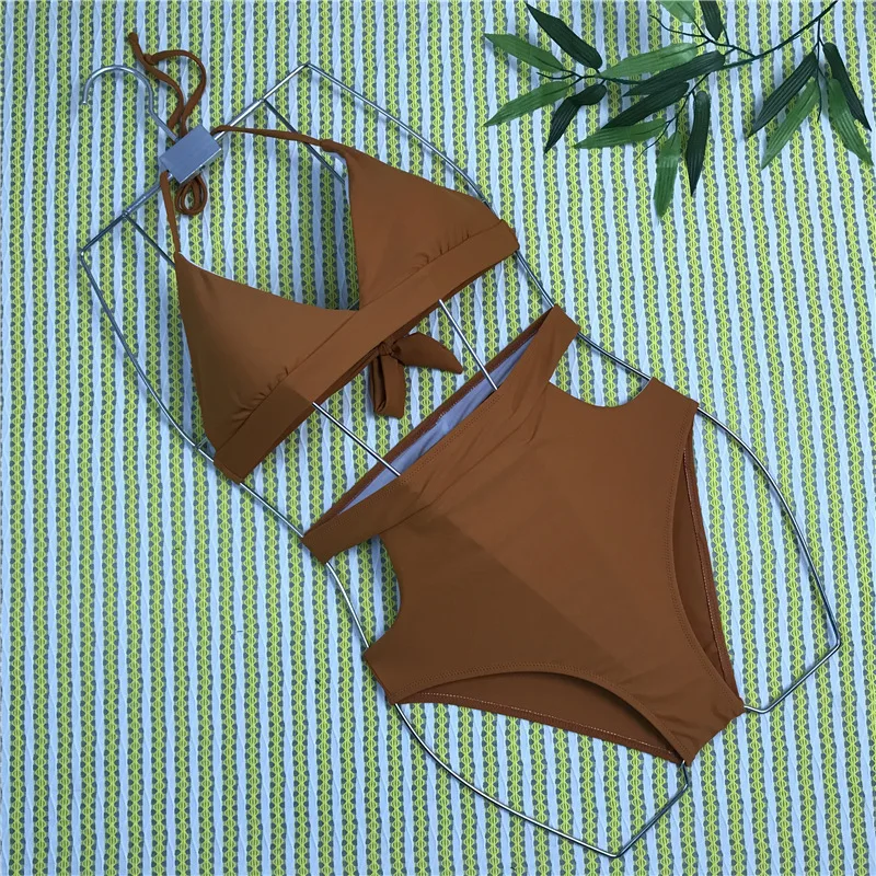 | New nylon fabric solid multi-colored high waist trim sexy women's split swimsuit women's bikini off shoulder camping bikinis -PX |