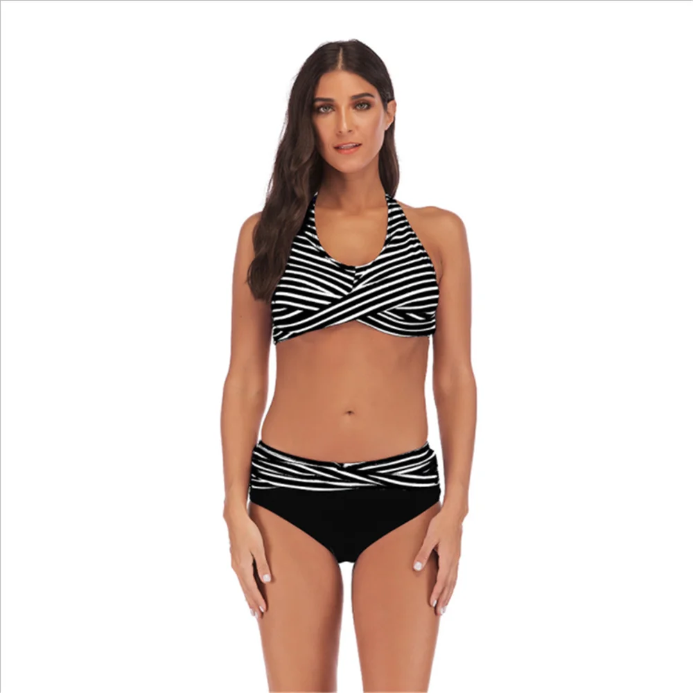 | Plus Size Bikini Swimwear Women S-5XL New 2019 Stripe Brazilian Bikinis Halter Bandage Swimsuit Women Two Pieces Sexy Beachwear |