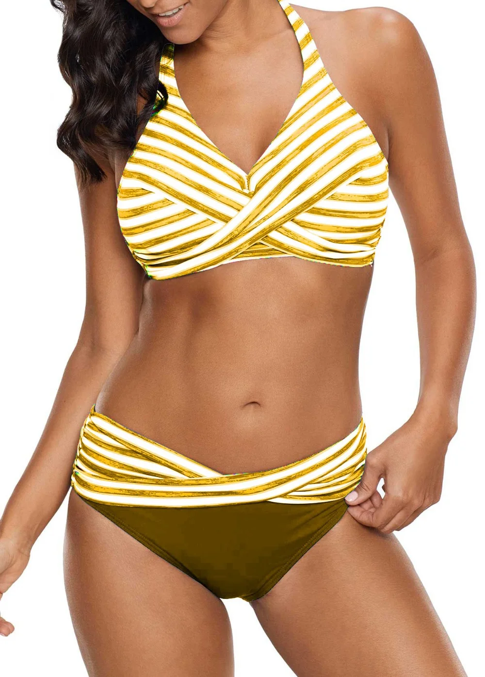 Charmleaks Women Bikini Set Stripe Swimsuit Cross From Swimwear Strappy Bathing Suit Beachwear