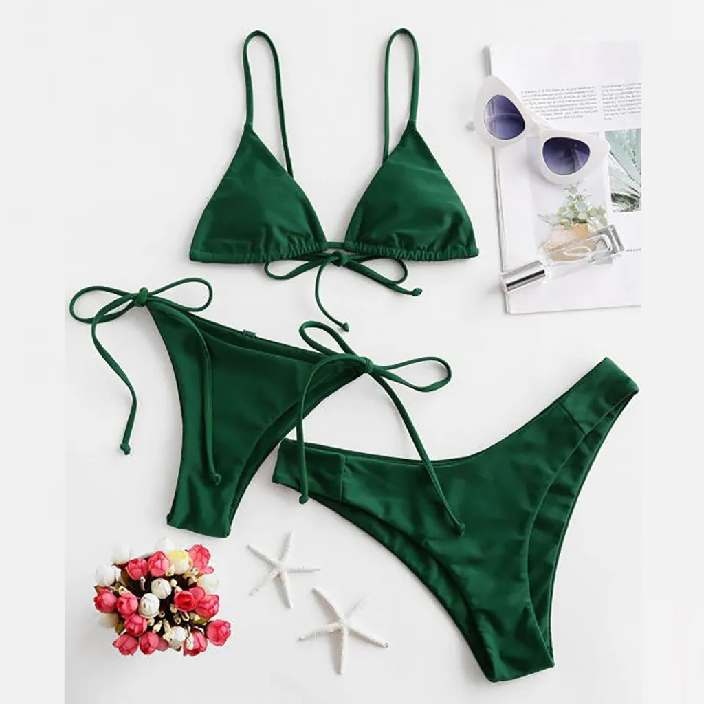 Women Bikini Set 2020 Summer Bandage Push-up Bra and Panties Bikini Set Bathing Swimwear Swimsuit Pure Color Swimming Costume