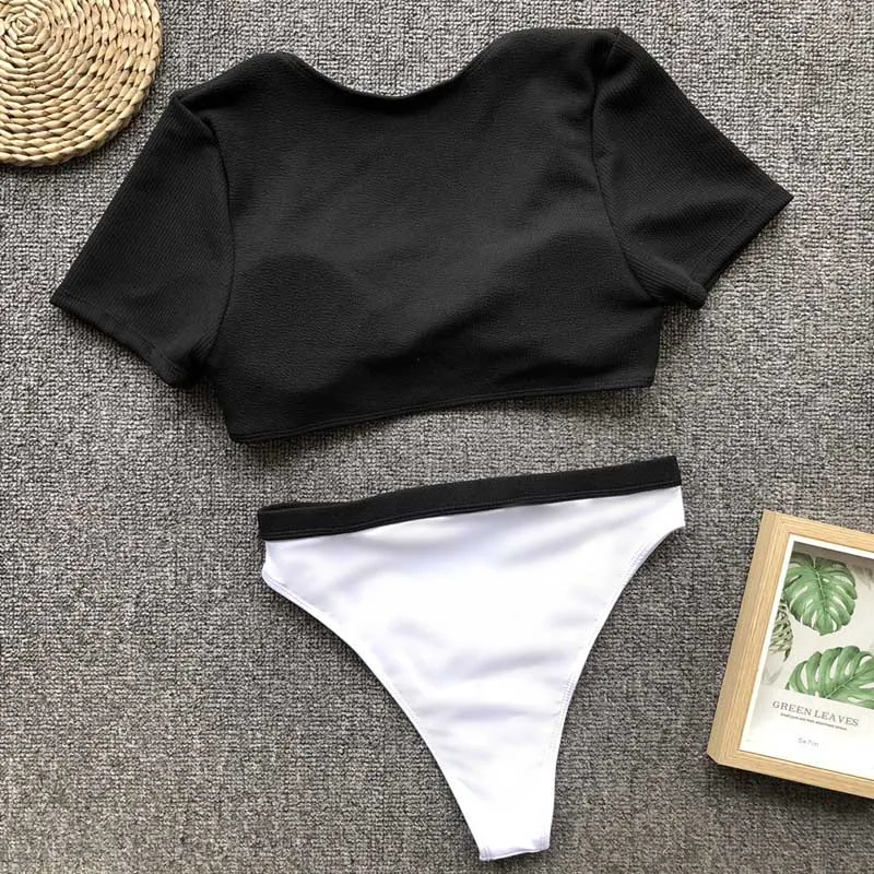 | Swimsuit 2020 Women Swimwear Sexy Bikini Set Short Sleeve Vintage Padded SwimSuit Tankini Bathing Suit Two Piece Swimming suit |