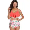 2019 Large Swimsuit Ruffle Floral Bikini Top High Waisted Bikinis Bottom Women Big Swimwear Plus Size XL-4XL Beachwear Biquini