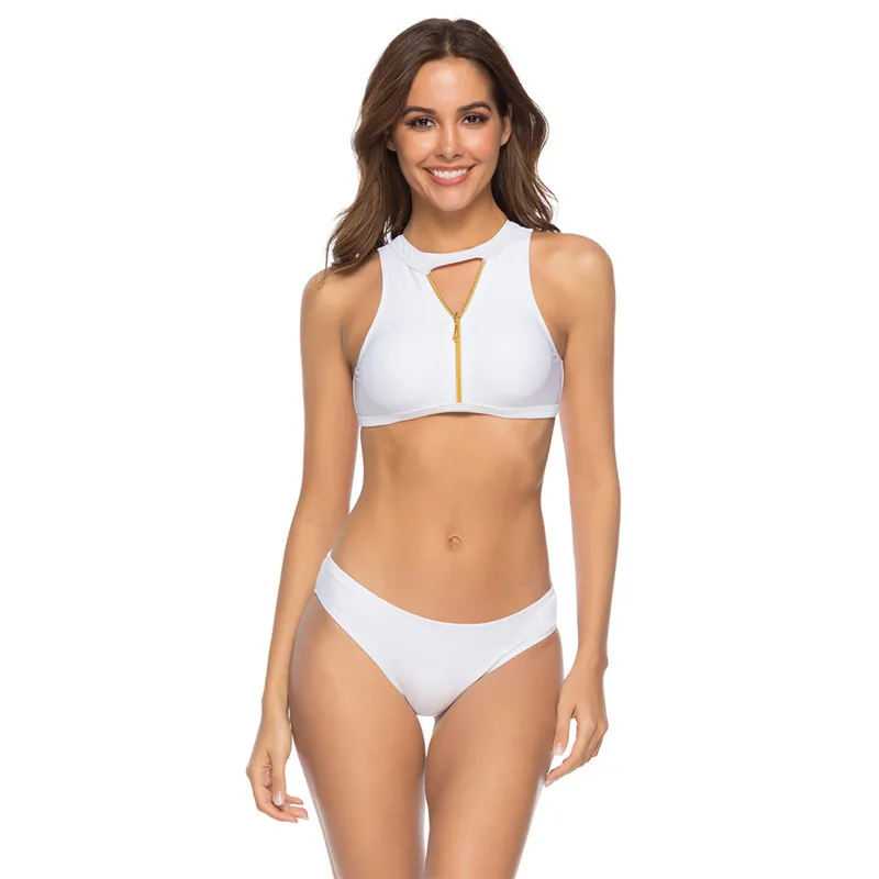 | 2020 New Two pieces Bikini Swimwear Women Sexy Halter Beach Wear Brazilian Swimsuit Black White Push Up Bathing Suit Women |