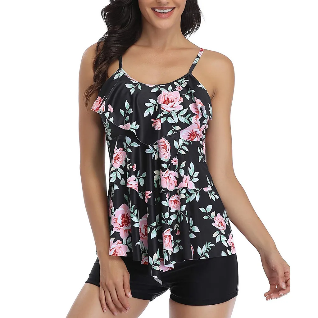 | 2020 Summer Tankini Swimsuits Women With Shorts Beach Wear Bikinis 2020 Swimwear Floral Stripe Two Piece Bathing Suits For Women |