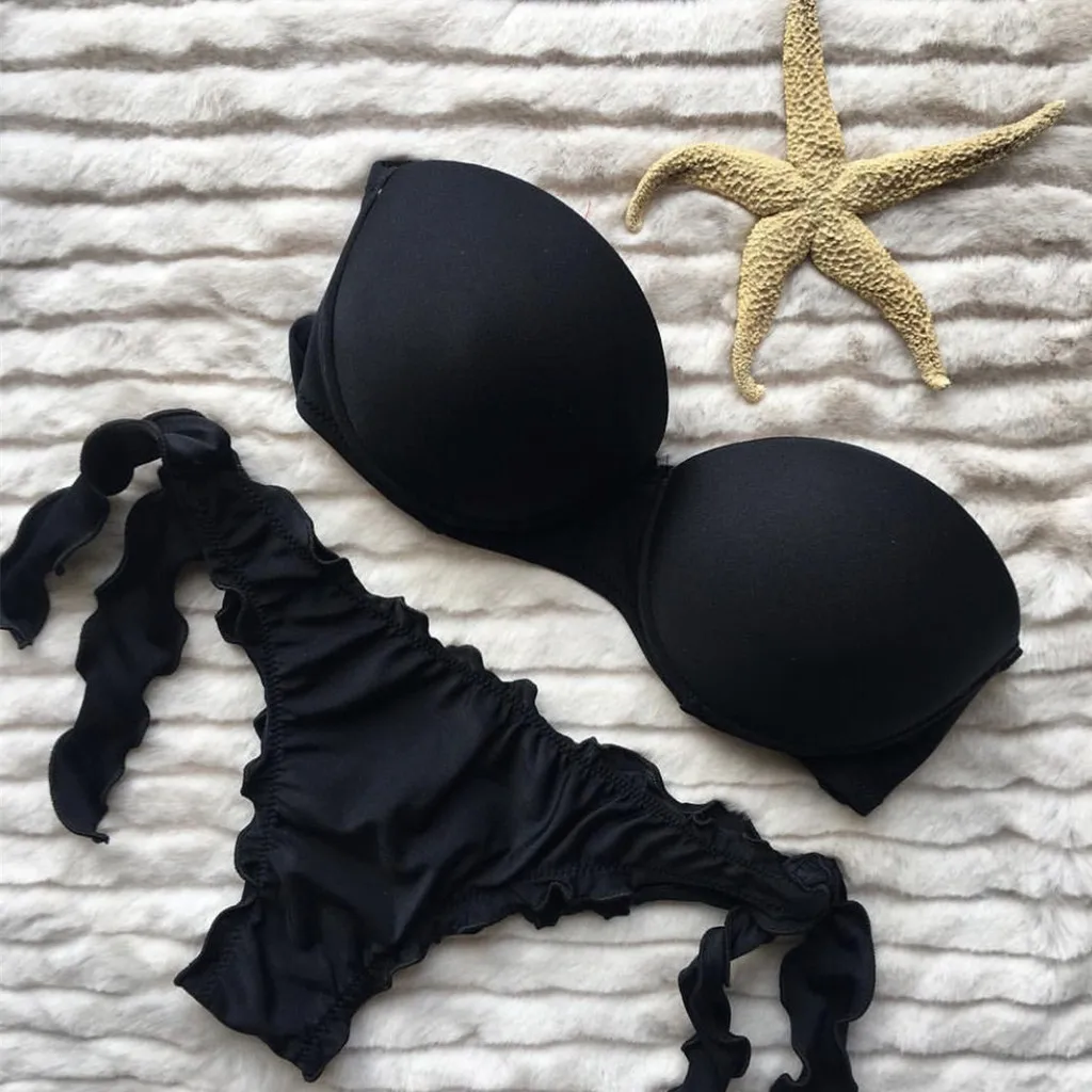 4 Color Solid Women's Two-piece Swimsuit Summer Sexy Push Up Bikini Set 2020 Beach Swimwear Black Biquini Mujer Talla Grande