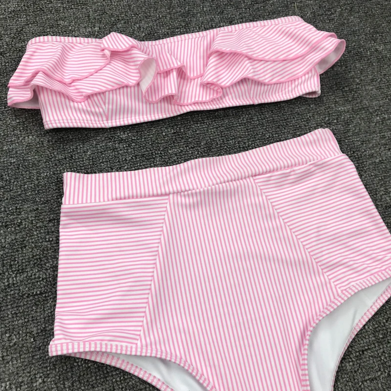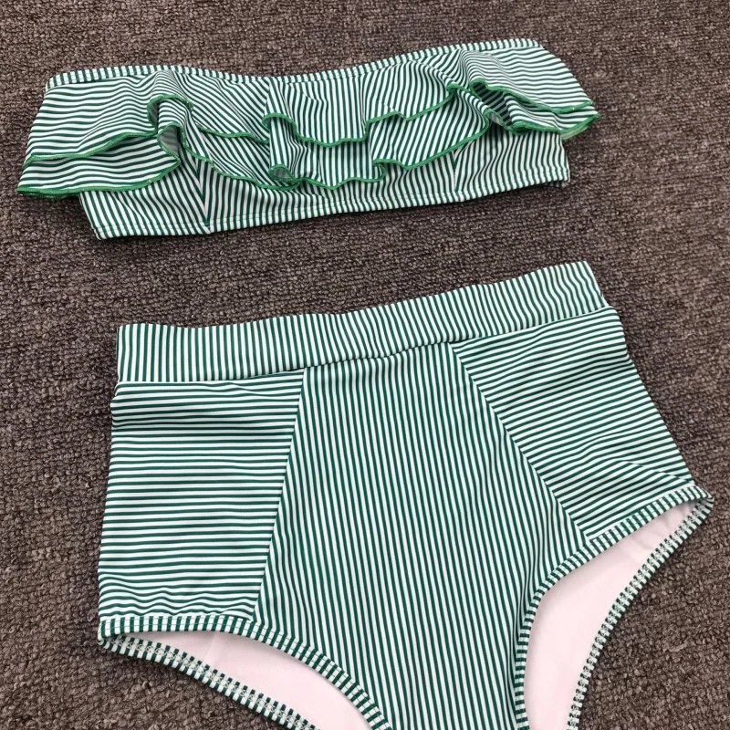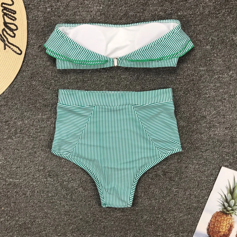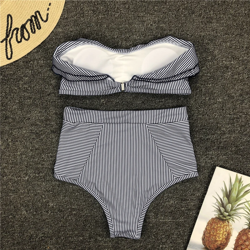 | Bandeau Swimsuit Sexy Bikini Push Up Women Two-Piece Swimsuits Striped High Waist Bikinis Retro Swimwear 2020 Bathing Suit Beach |