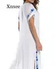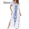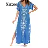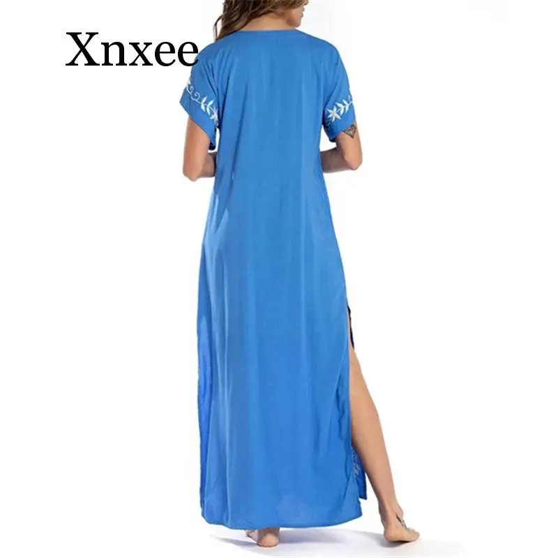 | blue boho Embroidery Cotton Beach Cover up Saida de Praia Swimsuit Women Bikini cover up Tunics for Beach Pareo Sarong Beachwear |