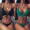 | CPUTAN 2020 Sexy lace up bikini set Halter high cut swimwear women Push up swimsuit Brazilian bikini Bathers bathing suit |