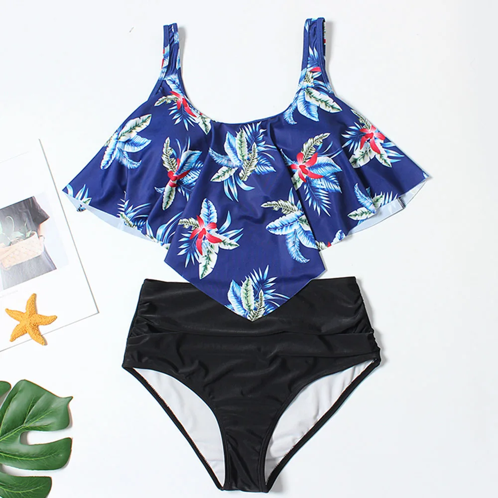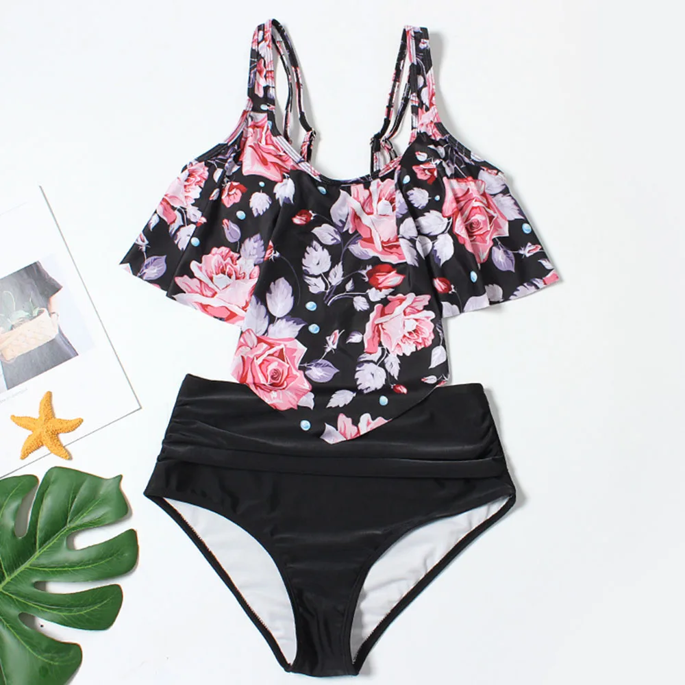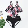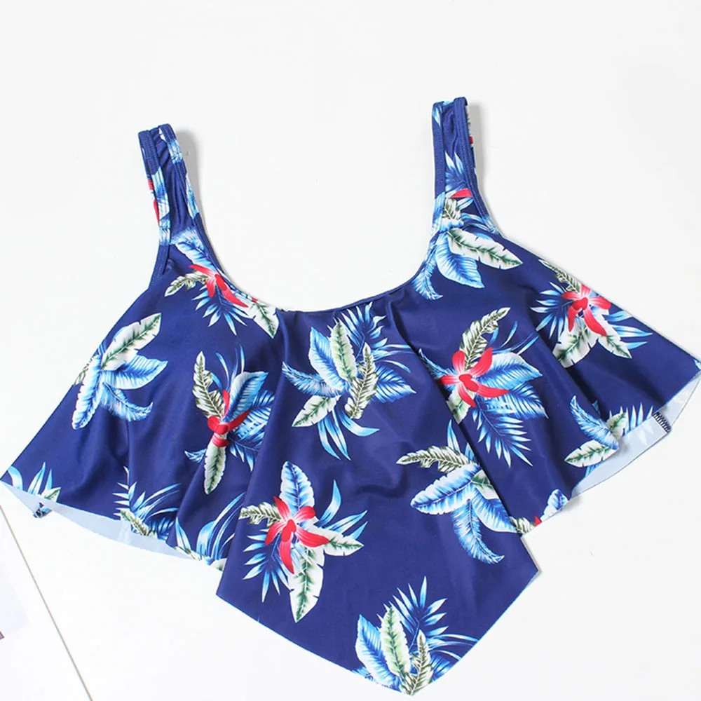 | Female Falbala Sexy Two Pieces Swimwear Chic Sweet Floral Girls Tankini Set Summer Women Beachwear Vacation Bikini Sets |