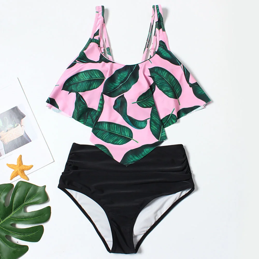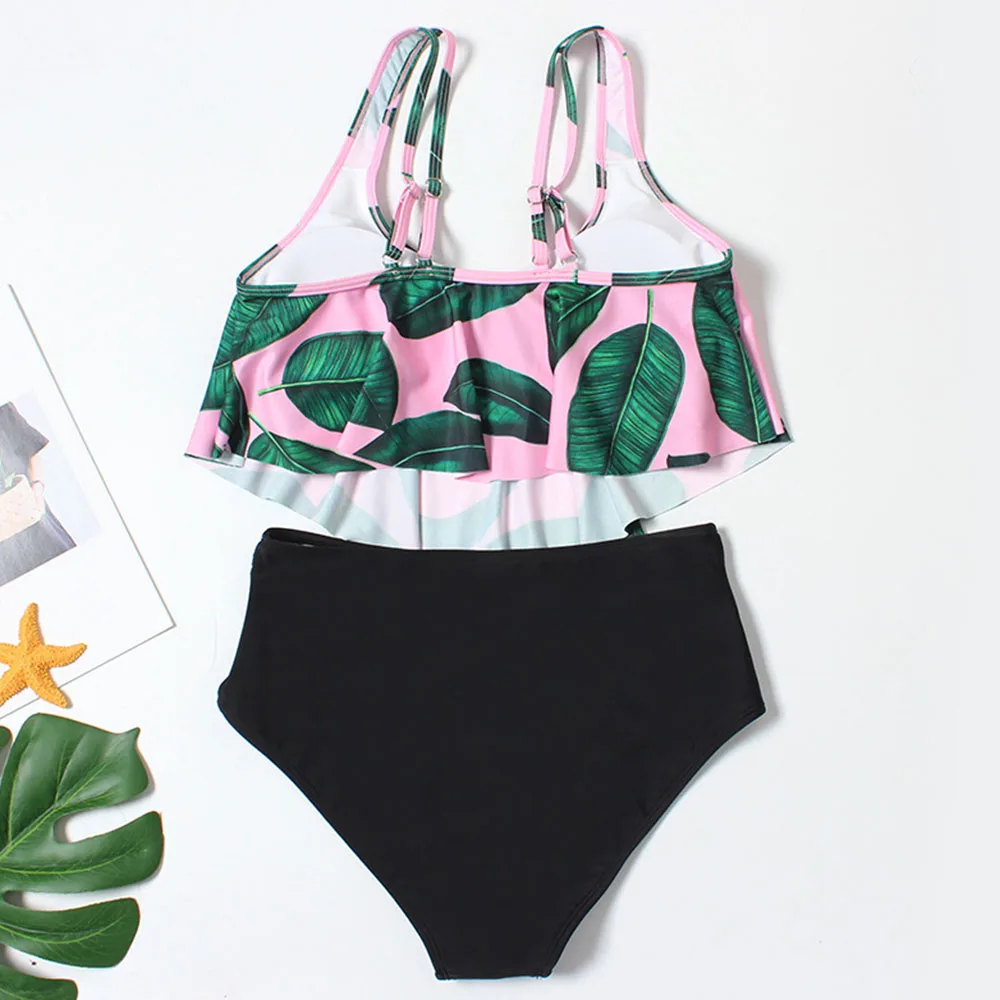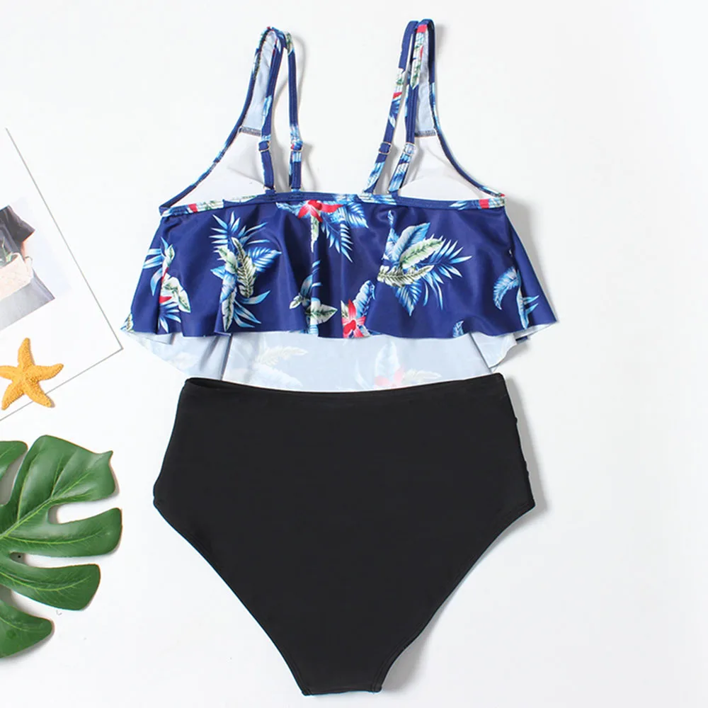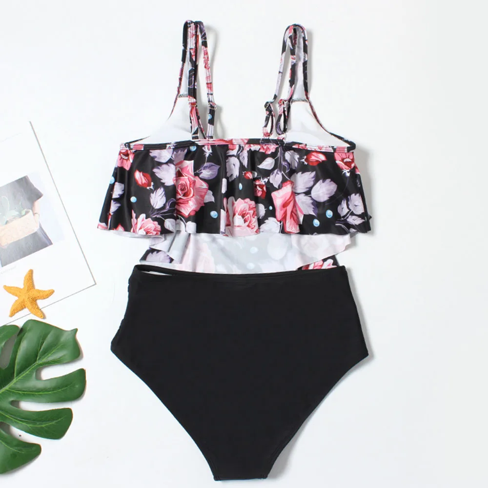 | Female Falbala Sexy Two Pieces Swimwear Chic Sweet Floral Girls Tankini Set Summer Women Beachwear Vacation Bikini Sets |