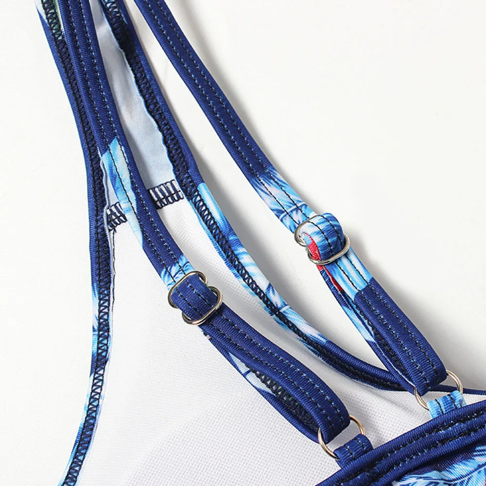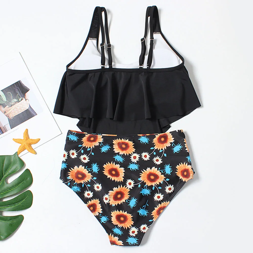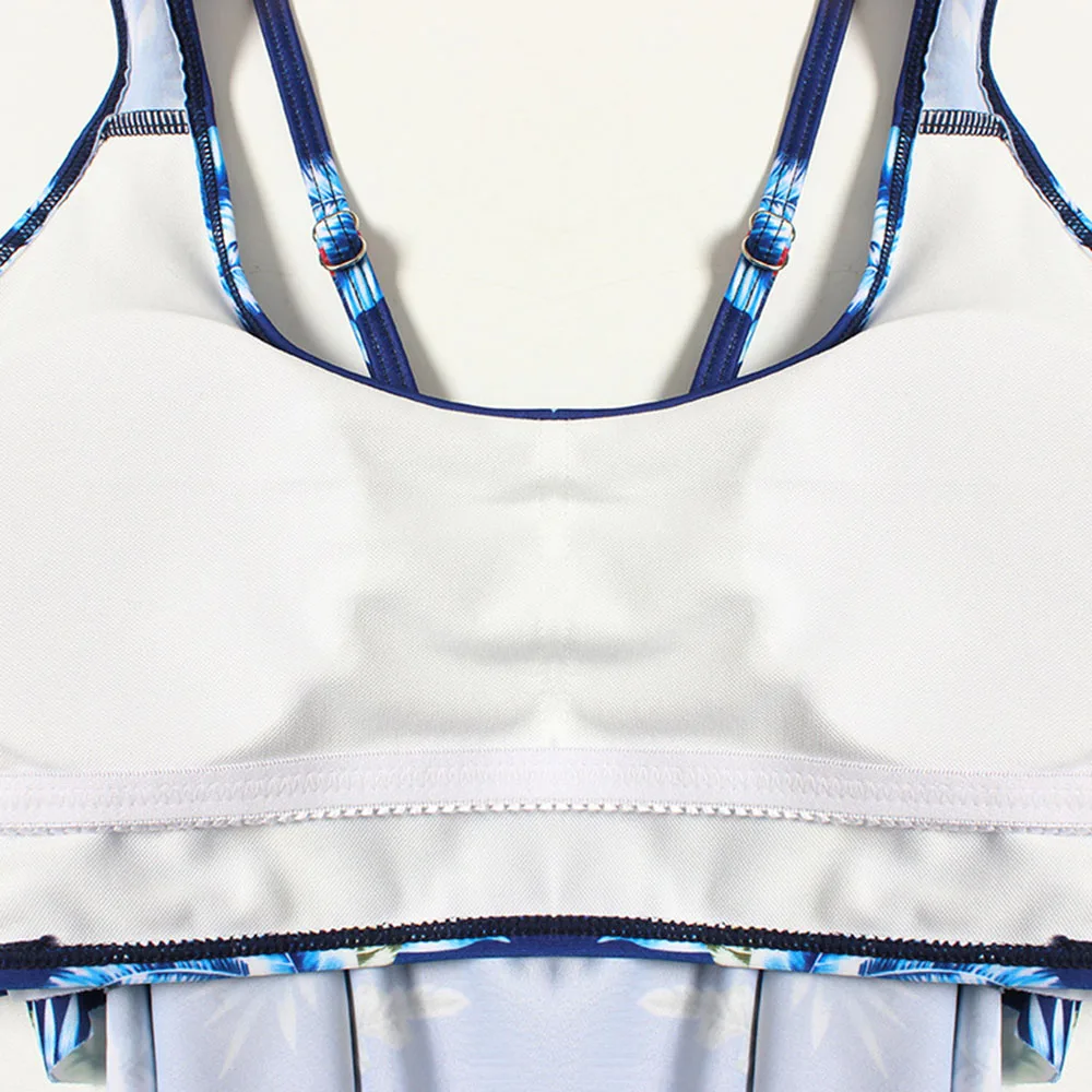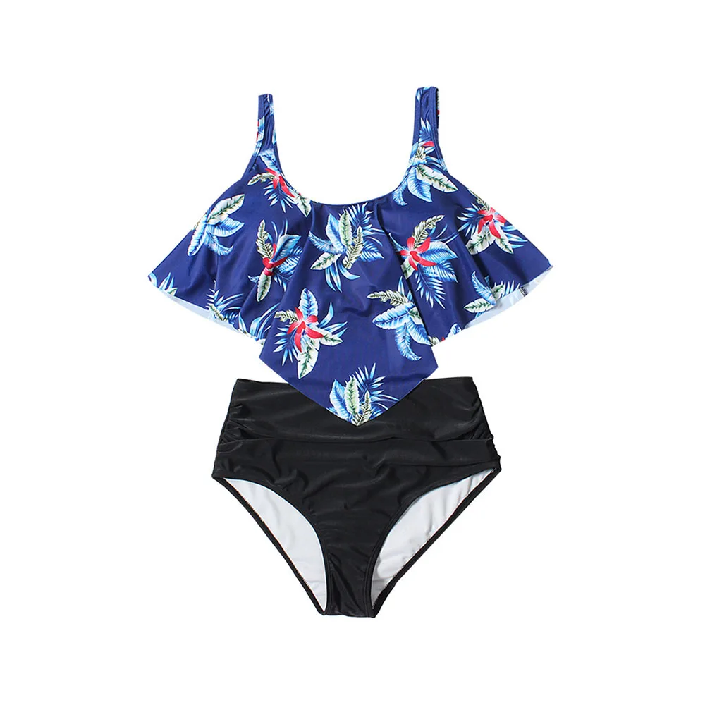 | Female Falbala Sexy Two Pieces Swimwear Chic Sweet Floral Girls Tankini Set Summer Women Beachwear Vacation Bikini Sets |