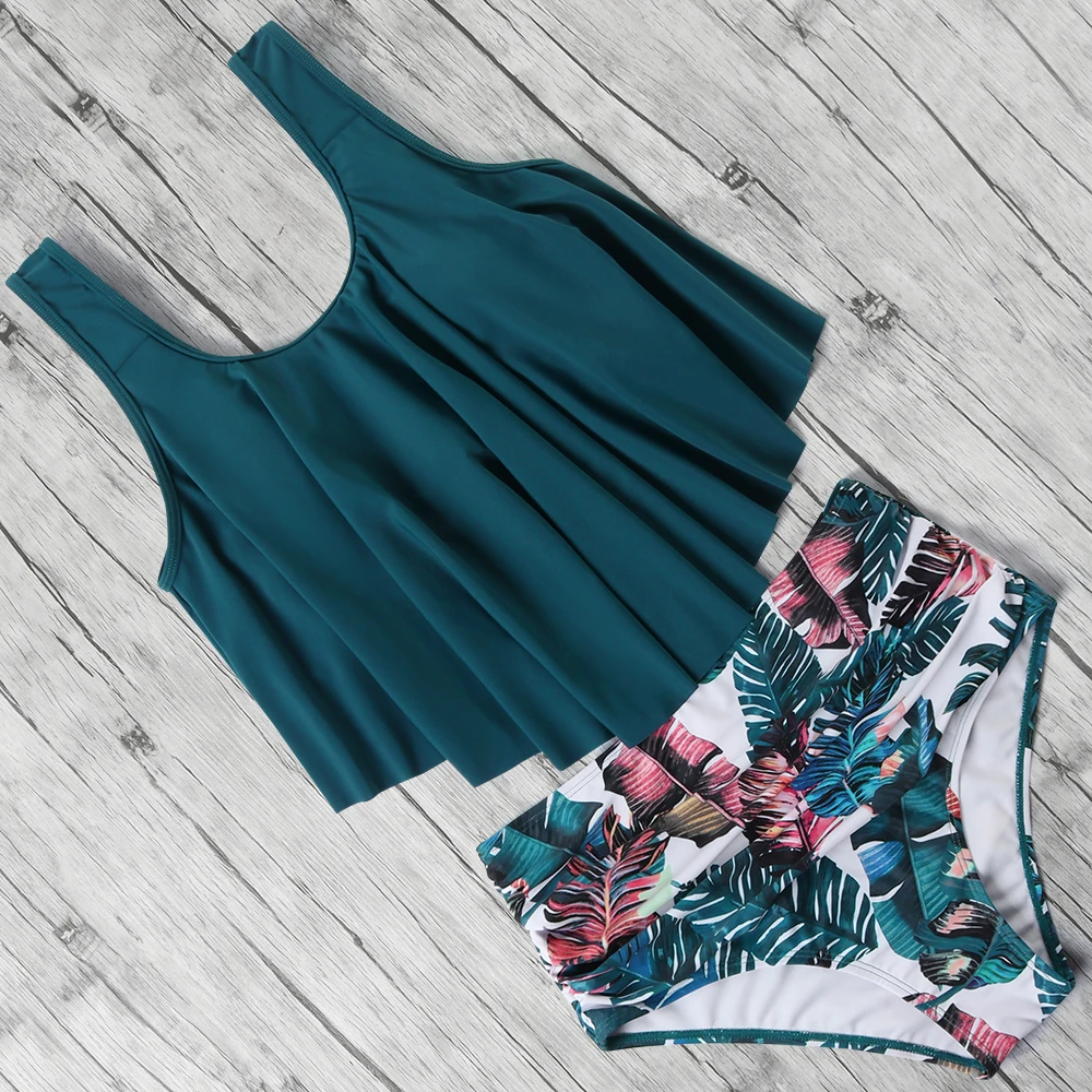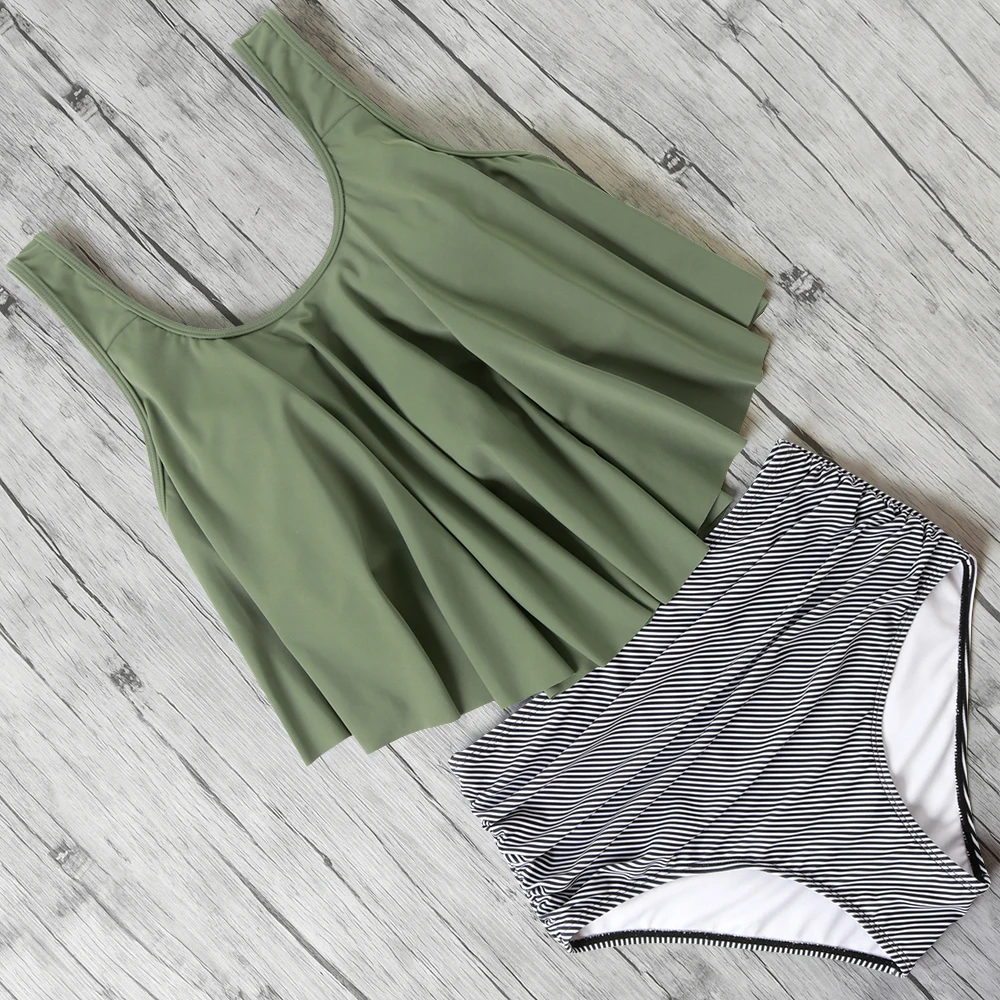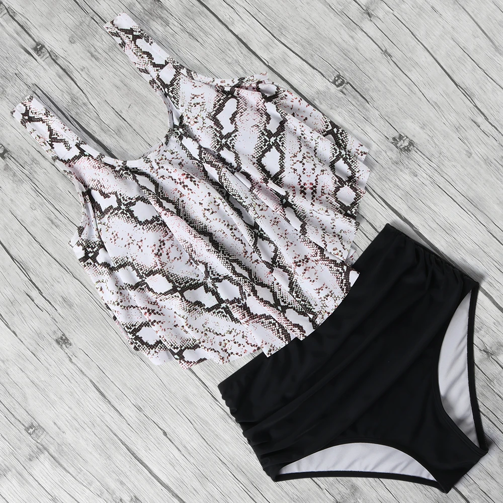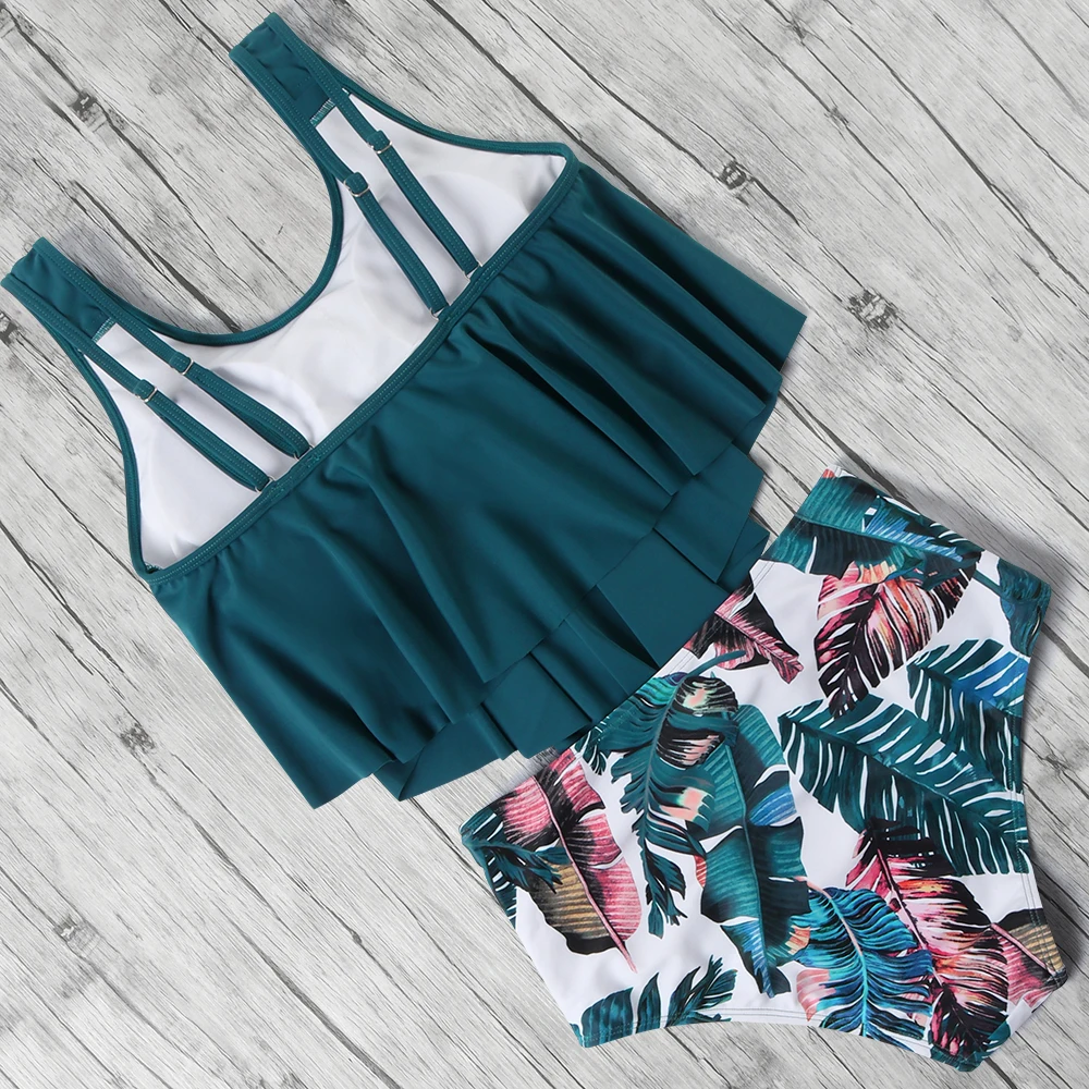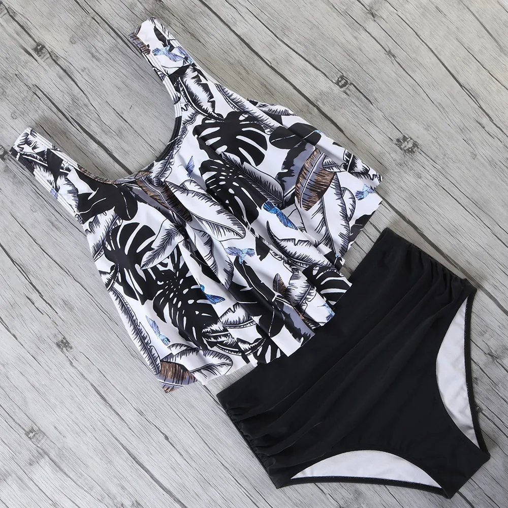 | High Waist Bikini Push Up Swimwear Women Swimsuit Ruffle Tankini Two Piece Bathing Suit Halter Beachwear Plus Size Bikini 2020 |