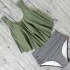Vintage Female Ribbed Swimsuit High Waist Bikini Women V Shape Bra Swimwear Two-pieces Bikini set Bather Brazilian Bathing Suits