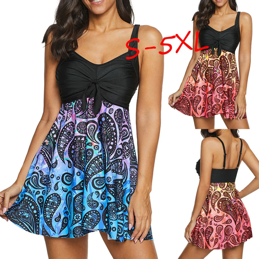 | Plus Size Sexy Bikini Set 2020 High Waisted Printed Beach Dress Two Piece Swimsuit With Skirt Bikini Sexy Mujer String Tankini |