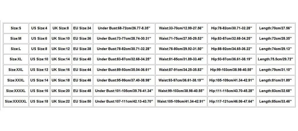 Size US Size UK Size EU Size Under Bust Waist Hip