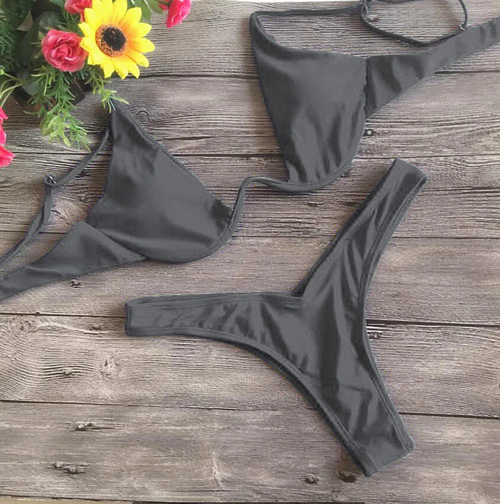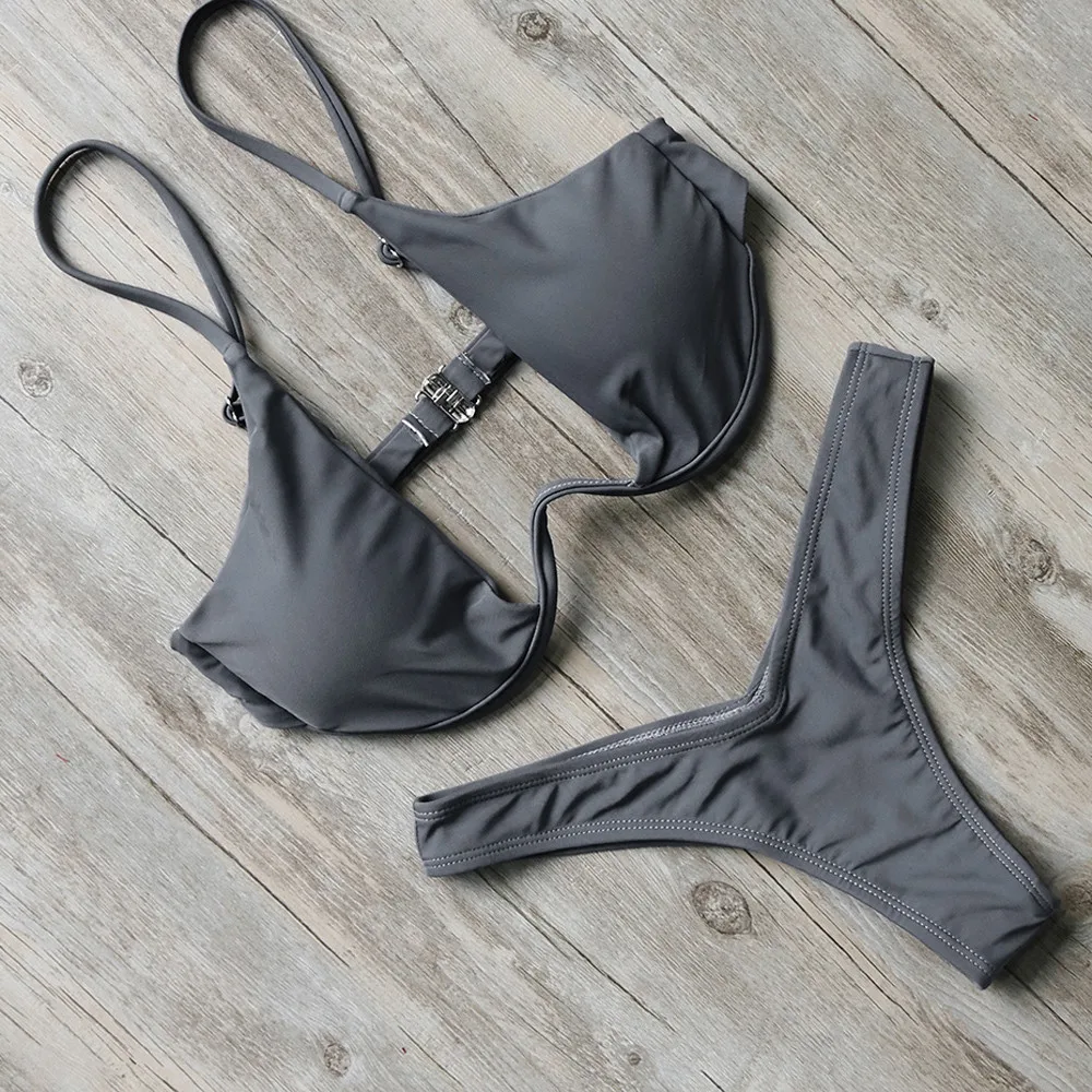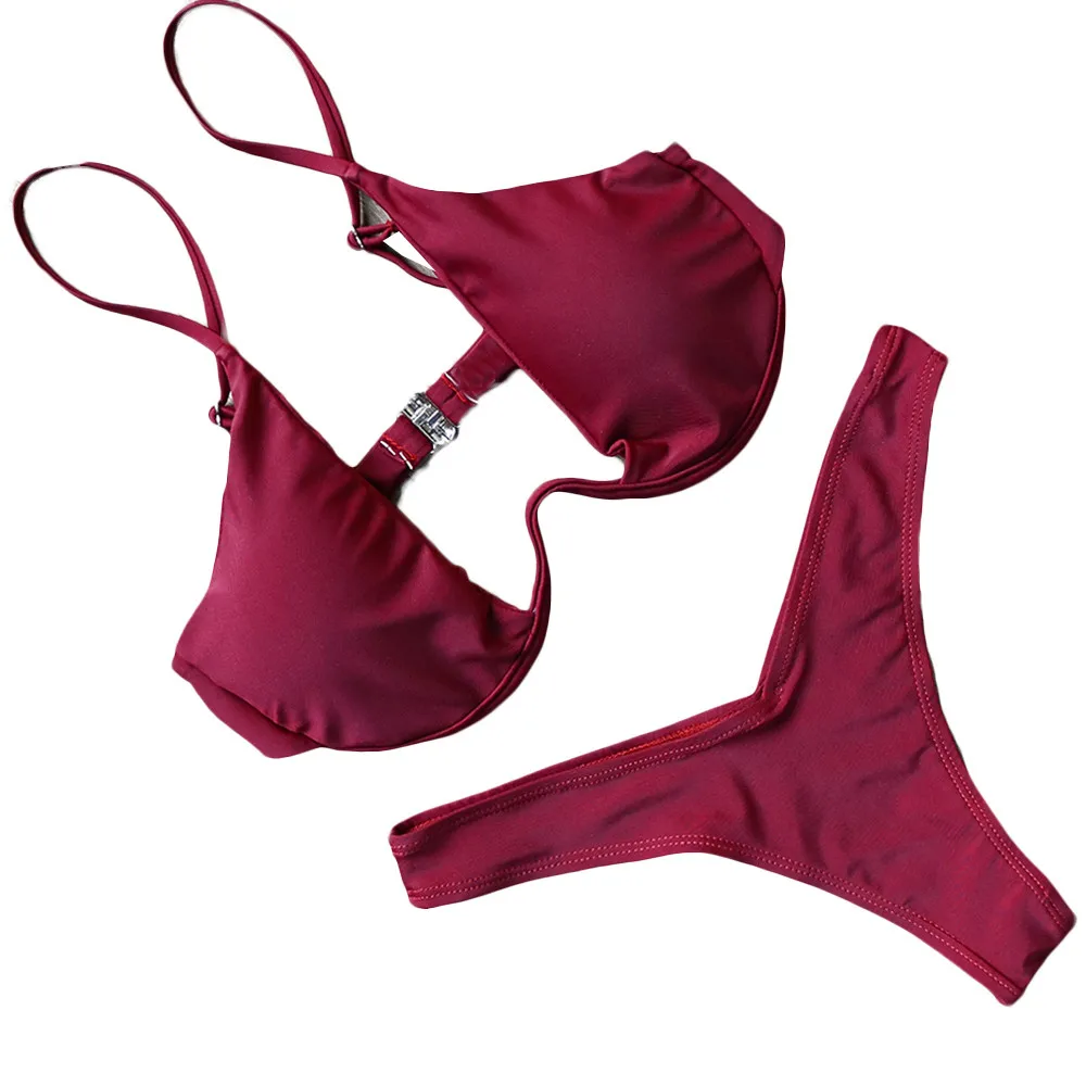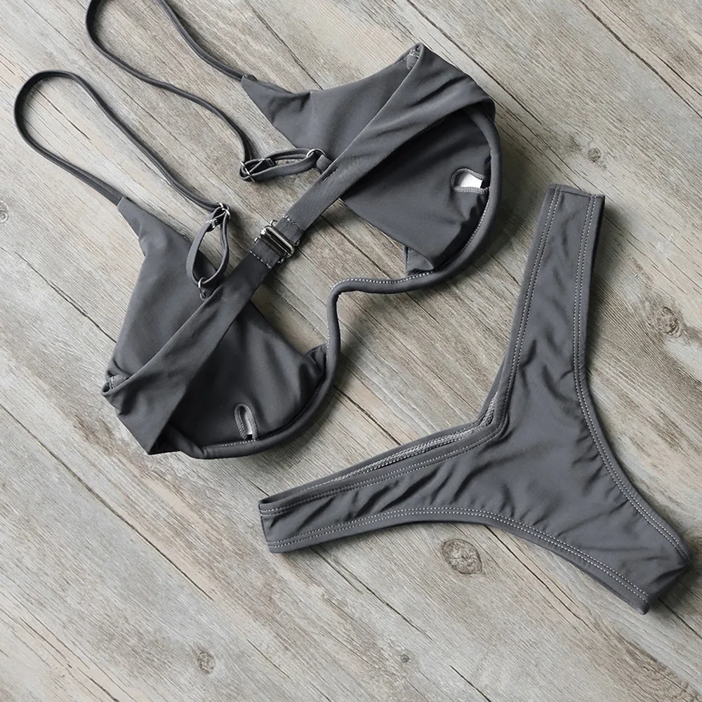 Women Fashion Padded Bra Bikini Set Swimsuit Ladies Solid Bandage Push-up Triangle Swimwear Bathing Suits Biquini SwimwearBuy Now On Aliexpress