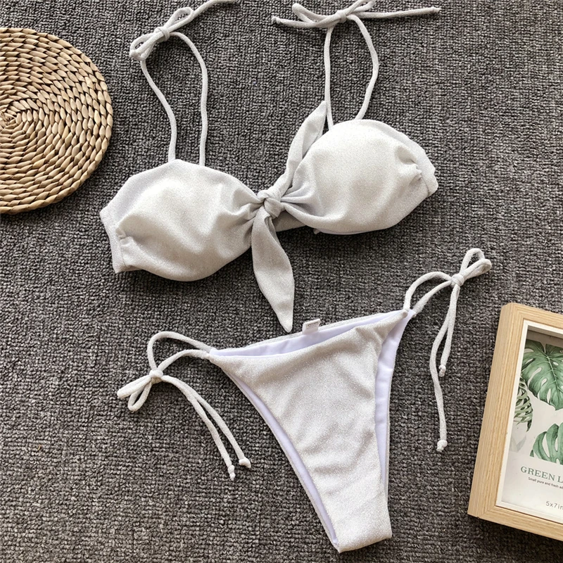 | Shiny Fabric Lacing Paded Sexy Women Bikini Set Hot Sell Lady Mini Swimsuit Push Up Thong Biquini Swimwear Female Bathing Suit |