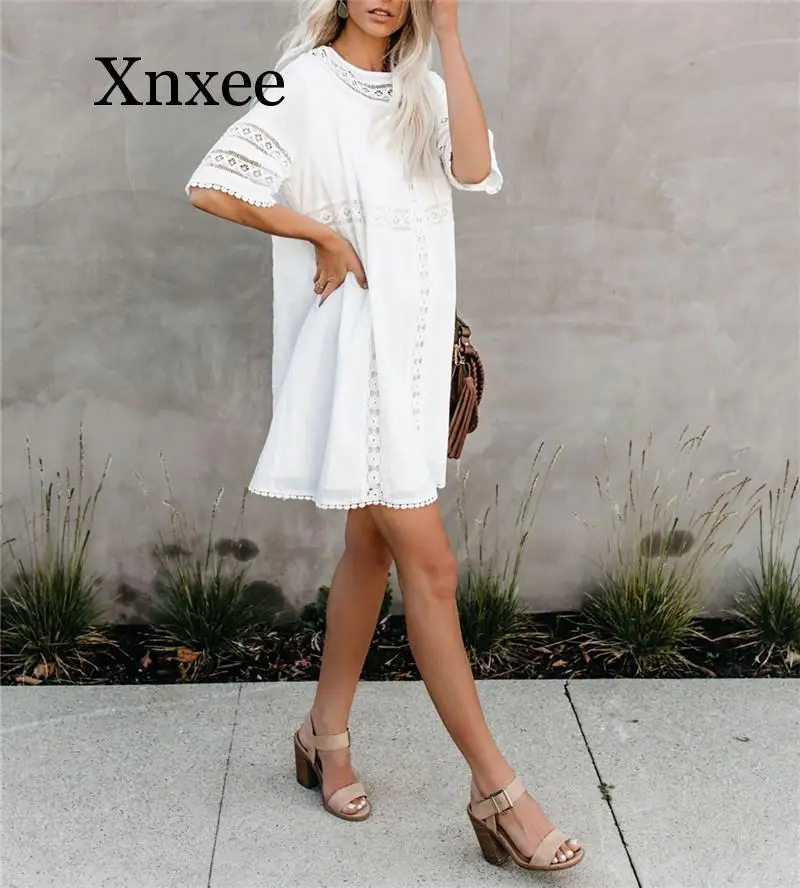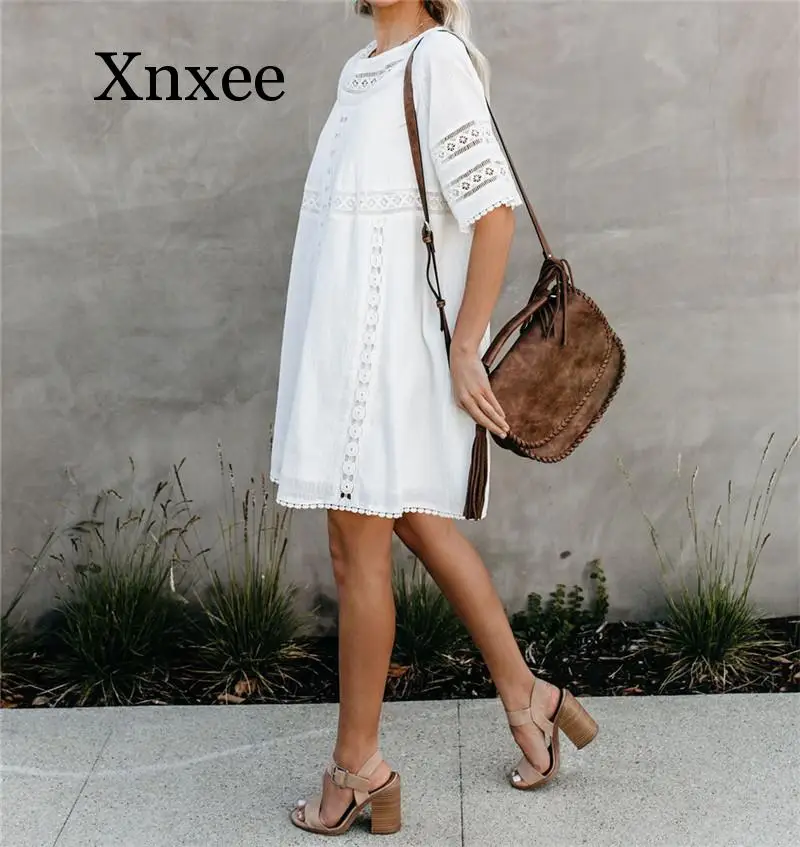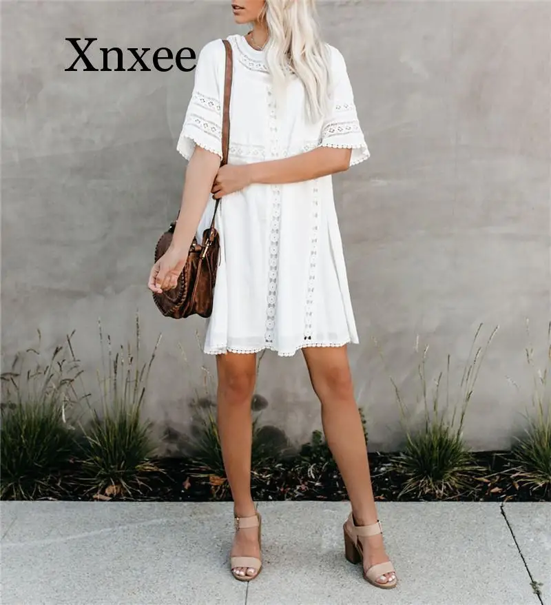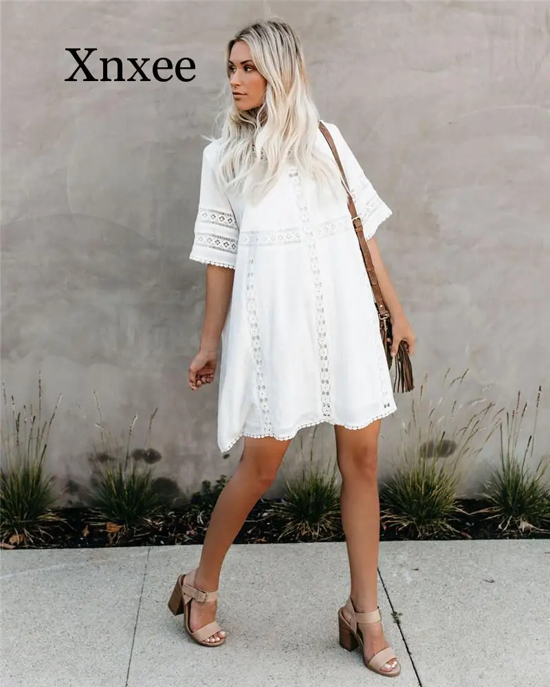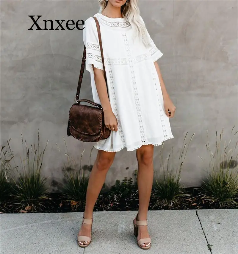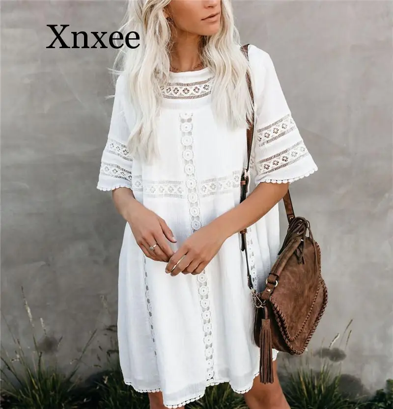 Best Price Comparison With Tunic Cover-ups 2020 White Tunic Sexy Hollow Out O-Neck Beach Mini Dress Summer Women Beach Wear Swim Suit Cover Up Sarong boho