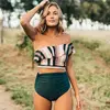 TANKINI 2020 New Print Striped High Waist Bikinis Women Bandage Top Push Up Swimwear Female Bathing Suits Beach Wear Biquini