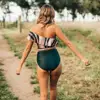 2020 Women Sexy One Piece Swimsuit Printed Sport Swimwear Ladies Striped Bathing Suit Monokini Bikini Beachwear Plus Size XXL