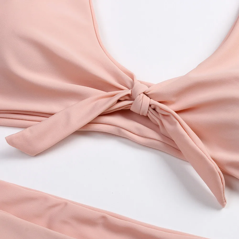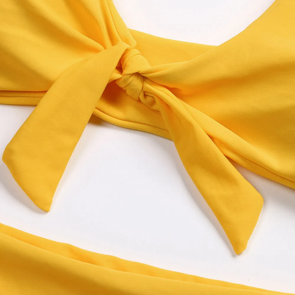 Yellow Swimwear Women 2020 Brazilian Lace-up Front Women Bikini Set Padded Push Up Bathing Suit Women Swimsuit Beachwear Biquini