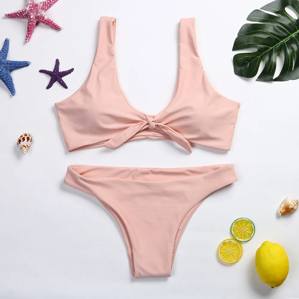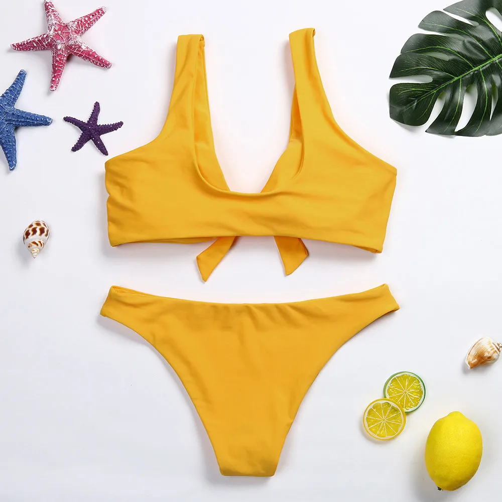 | Yellow Swimwear Women 2020 Brazilian Lace-up Front Women Bikini Set Padded Push Up Bathing Suit Women Swimsuit Beachwear Biquini |