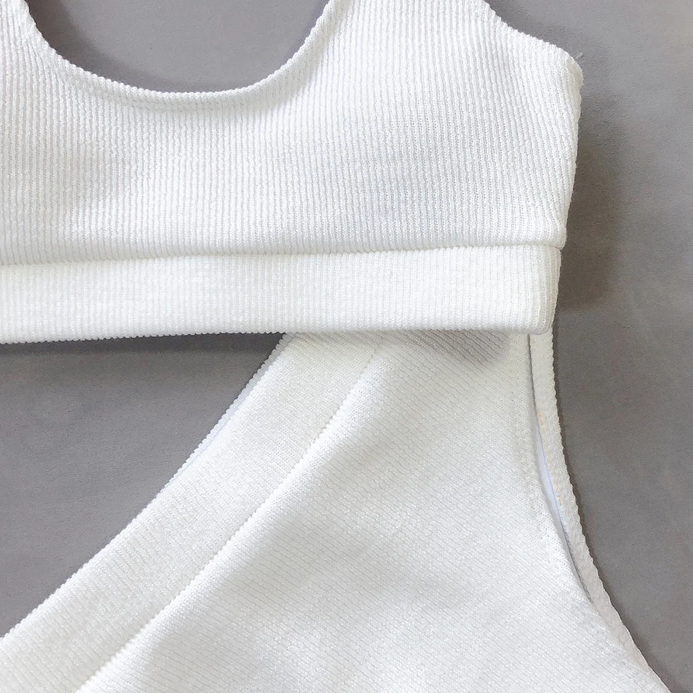 Vintage Female Ribbed Swimsuit High Waist Bikini Women V Shape Bra Swimwear Two-pieces Bikini set Bather Brazilian Bathing Suits