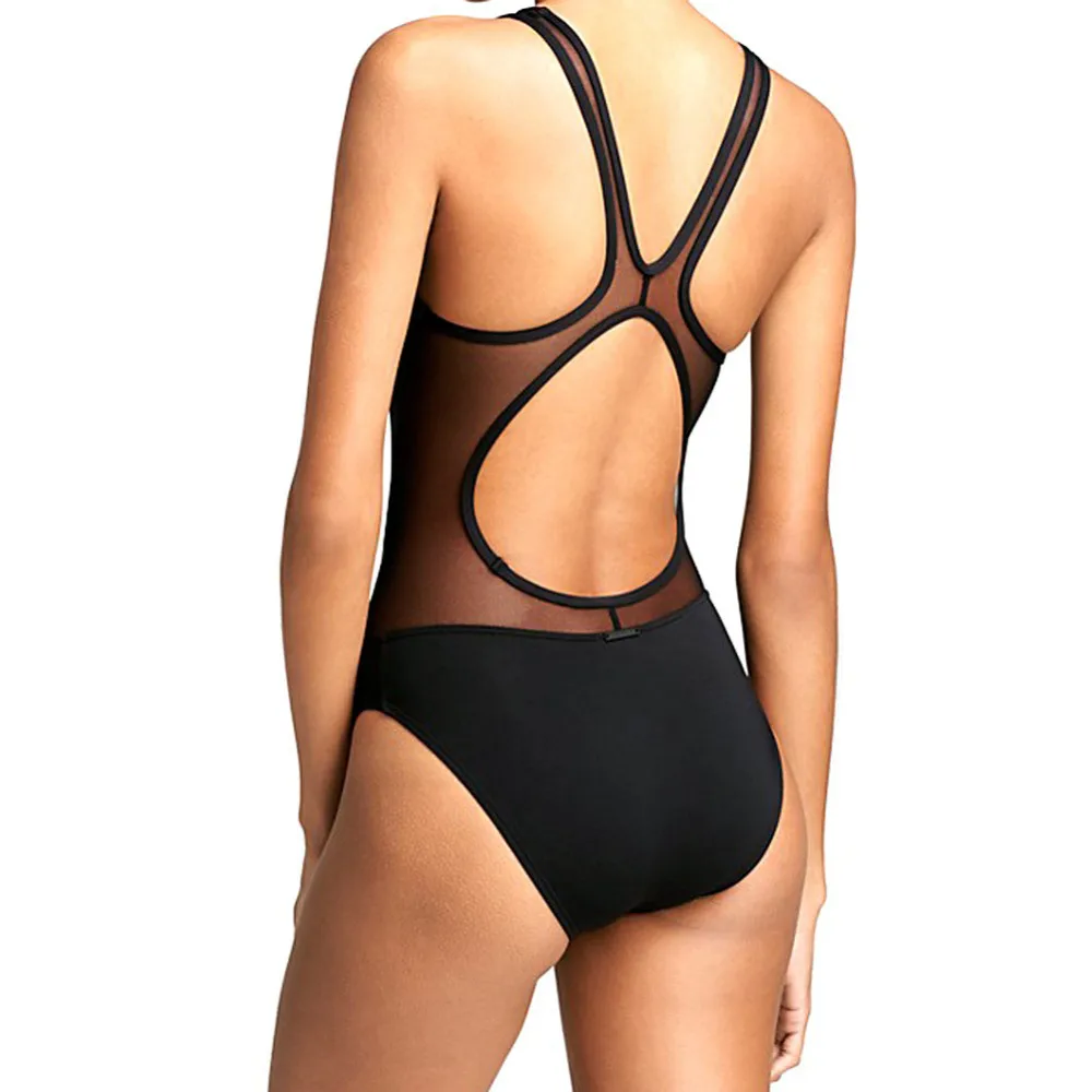 Best Price Comparison With 2020 Swimwear Women One Piece High Waist Sexy Backless Black Mesh Patchwork Sheer See Through Bikini Swimming Suit For Women