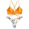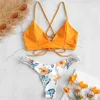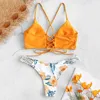 2020 Women's Bohemian Flower Swimsuit Summer Bikini 2020 Push up High Waist Wire Free Swimwear Orange Swimsuit mujer biquini