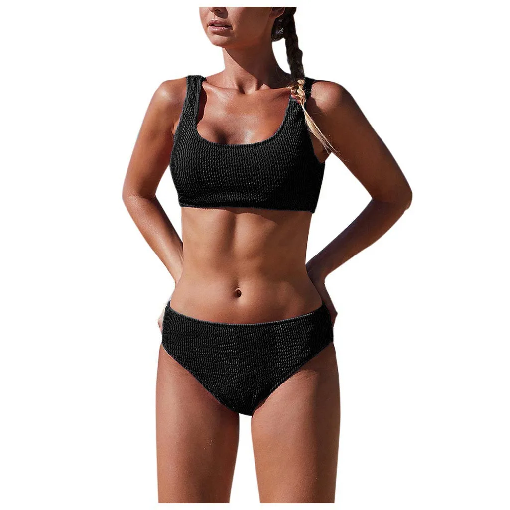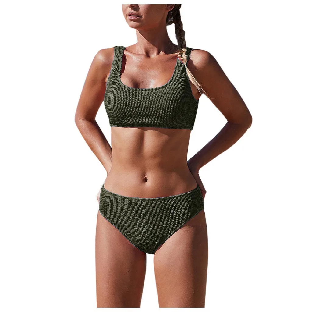 | 5 Color Women Swimsuit Bikini Set High Waisted Push Up Square Collor Swimwear Women 2020 Beachwear Bathing Suit Swim Wear |