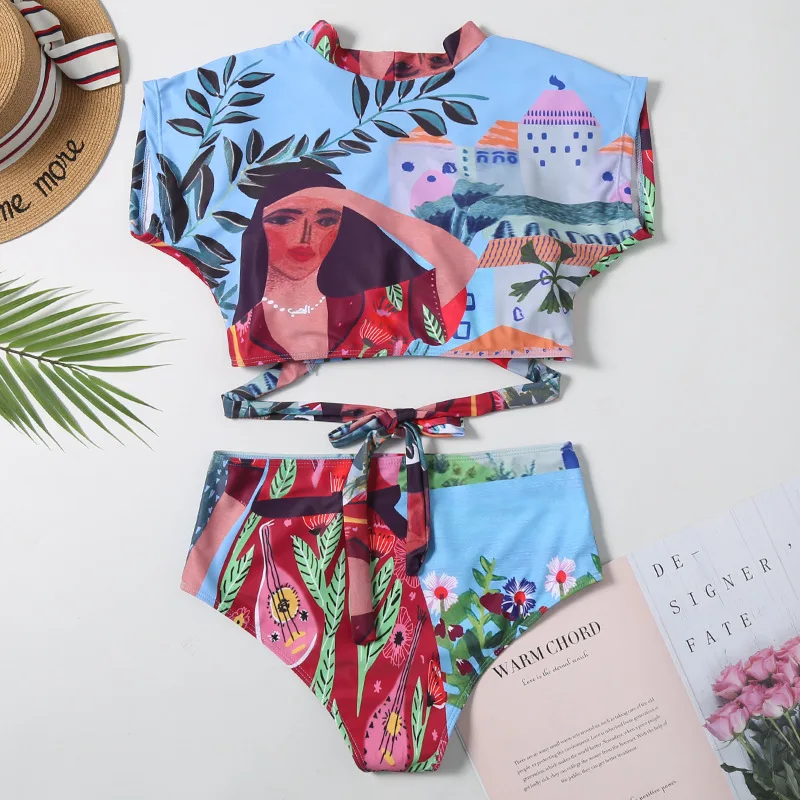 | Sexy High Cut Bikini 2020 Summer Swimsuit Women Swimwear Short Sleeve High Waist Bikinis Push Up Bathing Suit Female Beachwear |