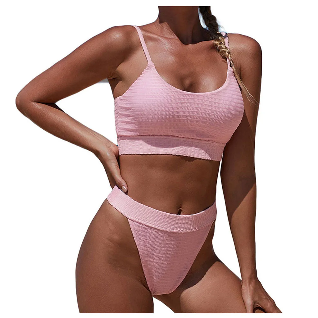 Sexy Women's Bikini 2020 High Waist Two-piece Beach Swimwear Fashion Bikini Set Push-ups Bra Vertical Stripes Swimsuit Mujer