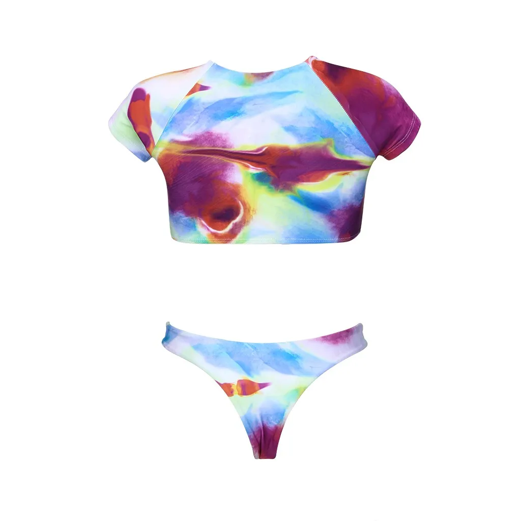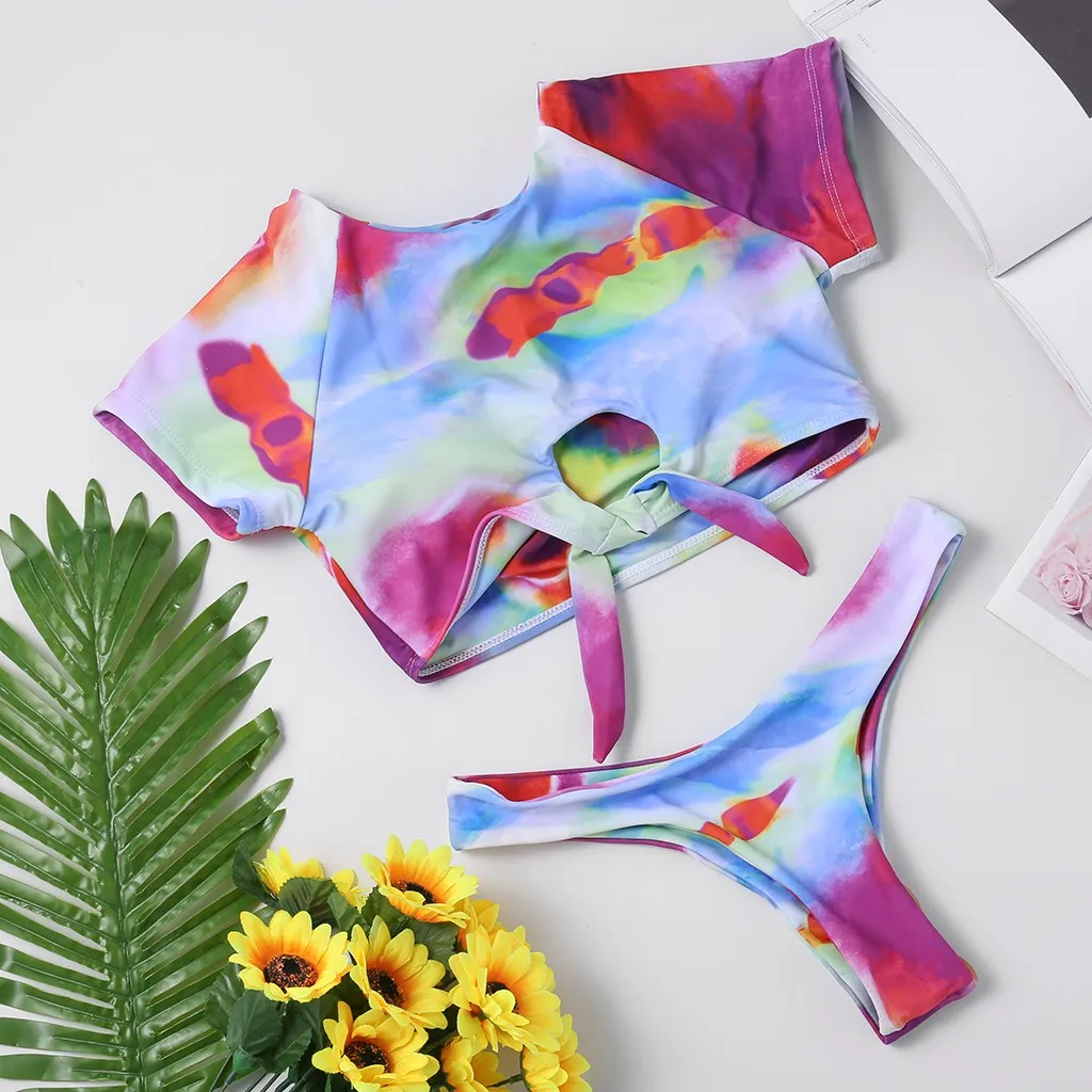 | Summer Sexy Two Piece Swimsuit Women 2020 Neon Rainbow Print Bikini Set Thong Push Up Swimwear Beachwear Bathing Suit For Women |