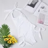 | 2002 White Sexy Deep V Neck Swimsuit One Piece Women Halter Bikinis Set Bandage High Waist Swimwear Women 2020 Swimming Biquini |