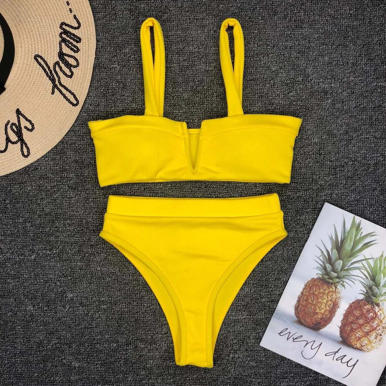 2020 Sexy Women High Waist Bikini Swimsuit Swimwear Female Bandeau Thong Brazilian Biquini Bikini Set Bathing Suit Bather