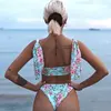 2020 Thong Swimsuit African Swimwear Print Bandage Women Tankini Long Sleeve Bikini Set High Waist Bathing Suit Monokini