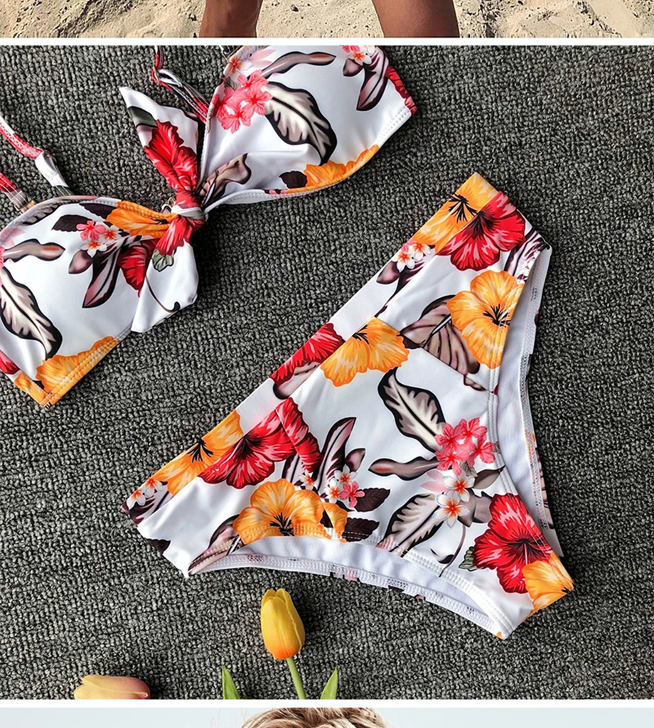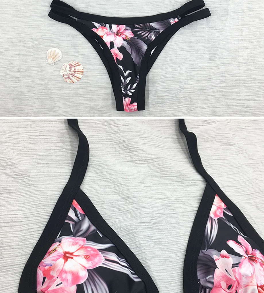 2019New Arrival 3D Floral String Bandage Super Push Up Bikini Set Sexy Swimwear Solid Bathing Suit Women BeachwearBuy Now On Aliexpress