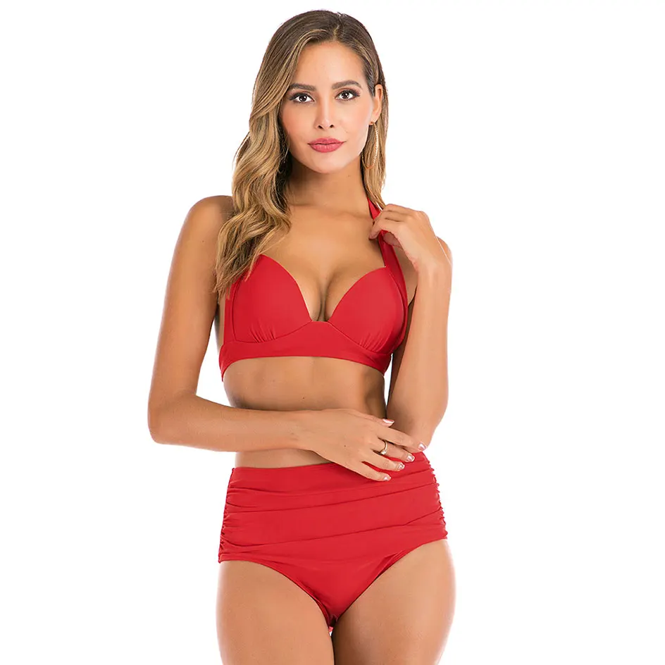 Hirigin Plus Size High Waist Bikini Set Women Swimwear 2020 New Halter Bandage Push Up Padded Swimsuit Women Bathing Suit Summer