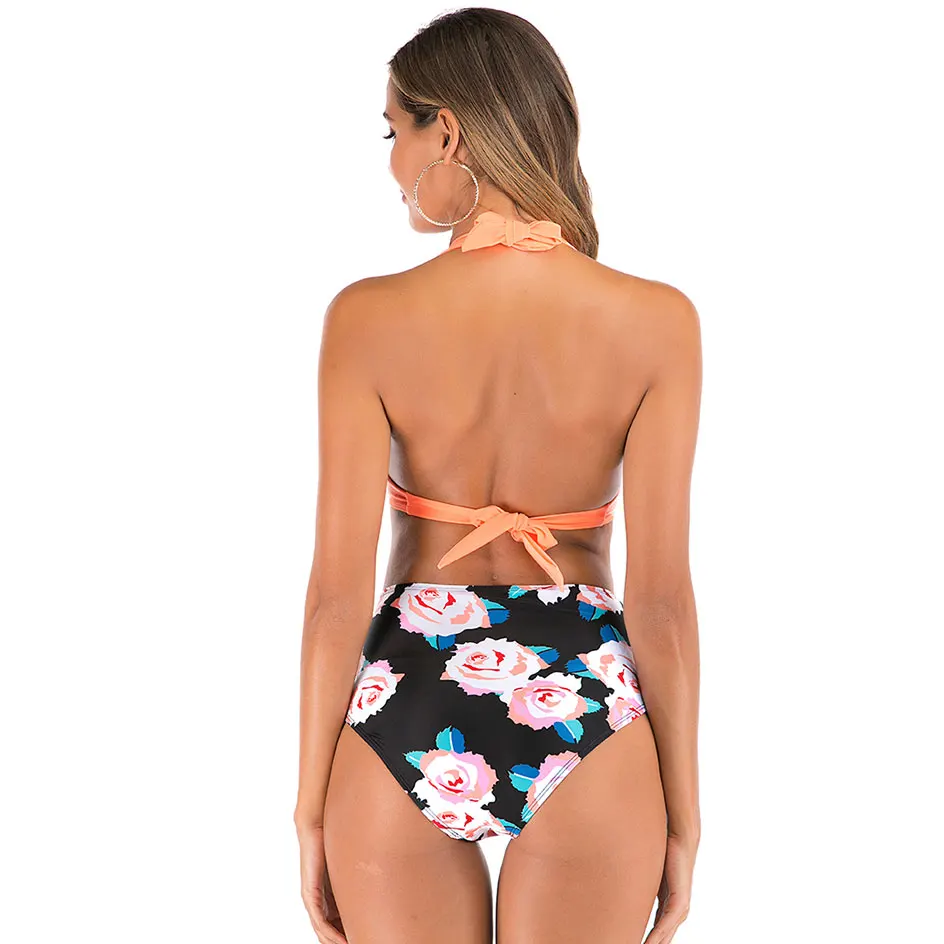 2019 New Sexy High Waist Bikini Swimwear Women Swimsuit Bathing Suit Biquini Print Flower Lace Swimwear Female Beach Wear