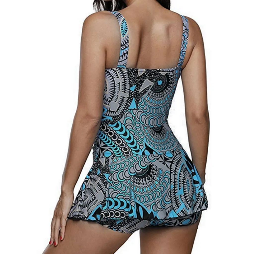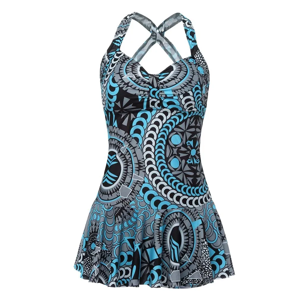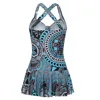| Blue Paisley Print Swimwear Women One Piece Tankinis 2020 Mujer Plus Size Push Up Square Collar Beach Dress Summer Swimming Suit |