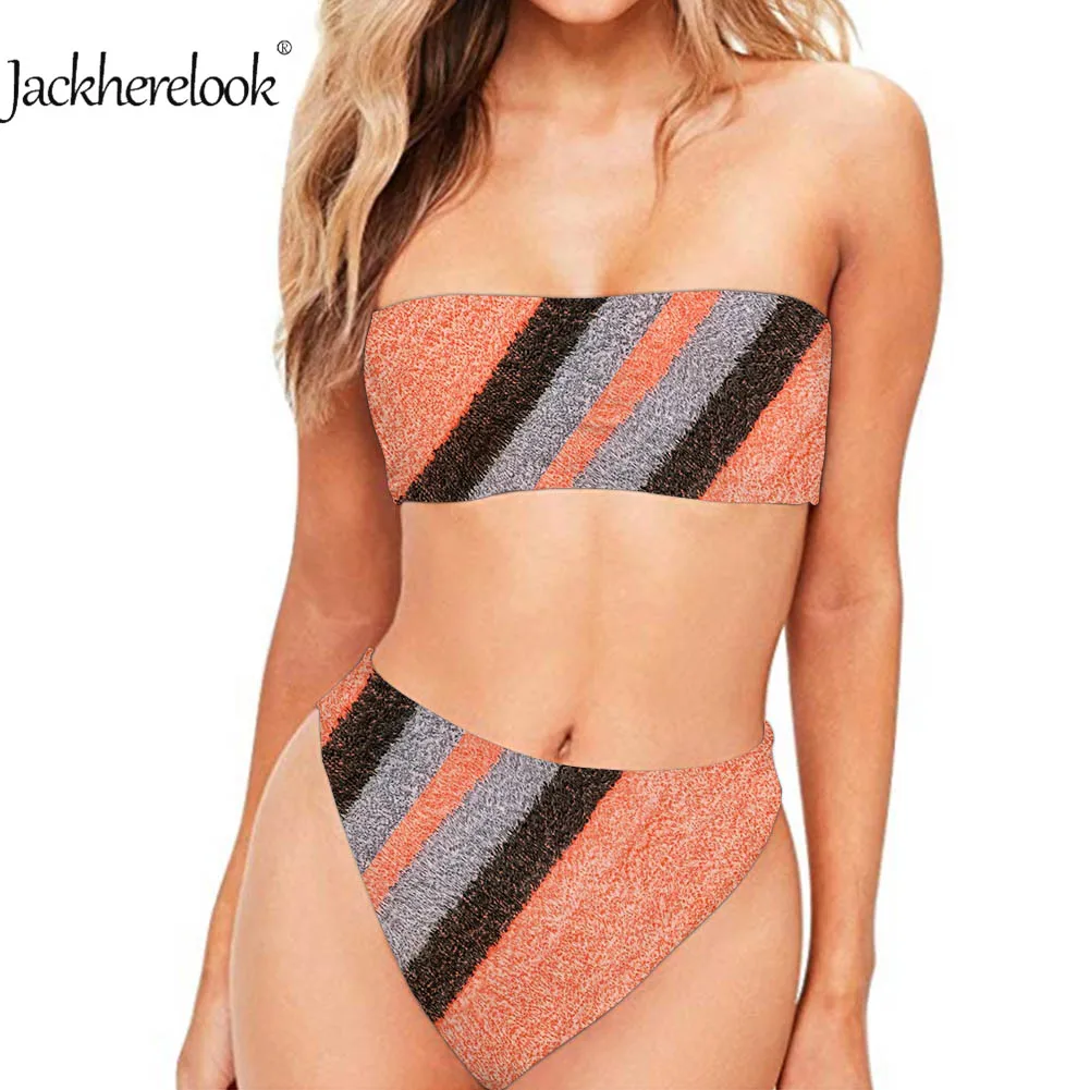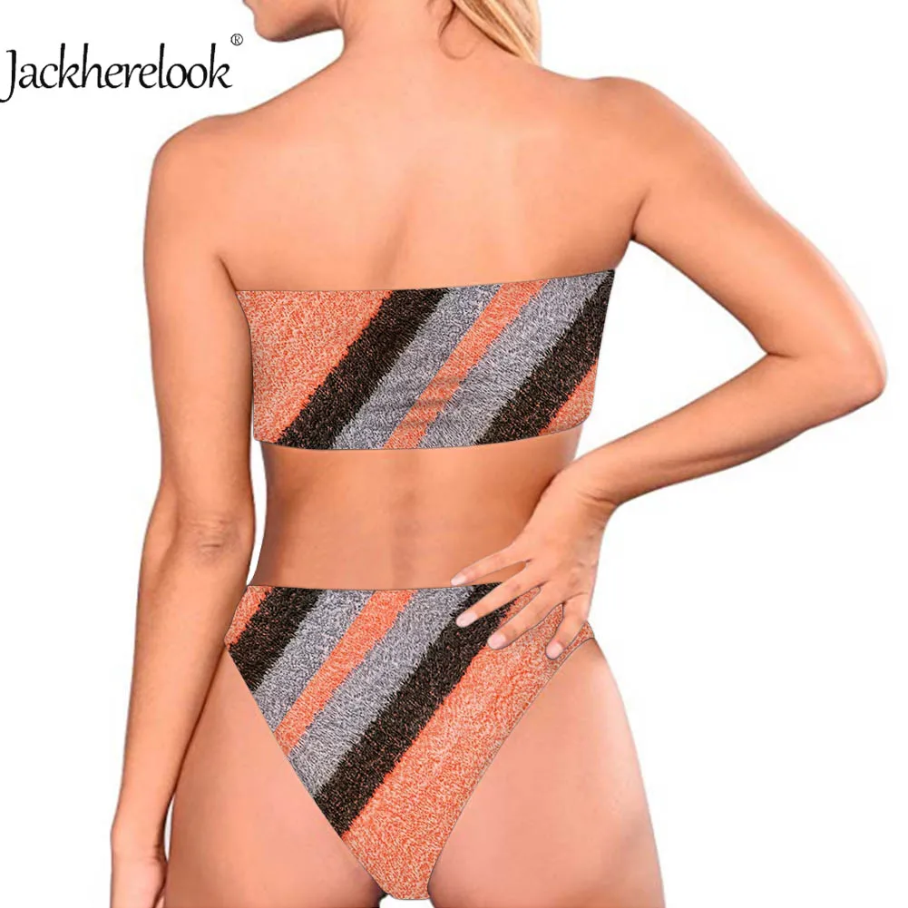 | Jackherelook Female Strapied Pattern Fahison Backless Bandeau Separate Women's Swimsuit Sets Female Beach Bathing Suit Bikinis |