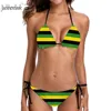 | JackherelooK Jamaica Flag Print Women Push-up Low Waist Striped Bikini Set Girl Bandage Swim Beachwear Triangle Maillot De Bain |