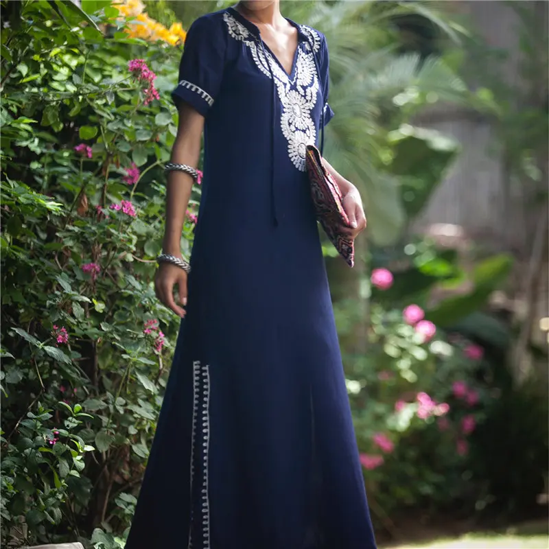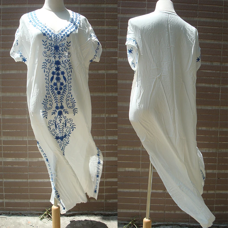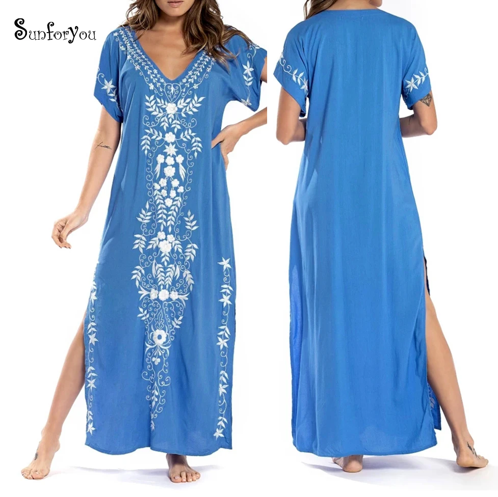 Embroidery Cotton Beach Cover up V neck Plus size Beach Coverups for Women Robe de Plage Swimsuit Cover up Pareos de Playa Mujer