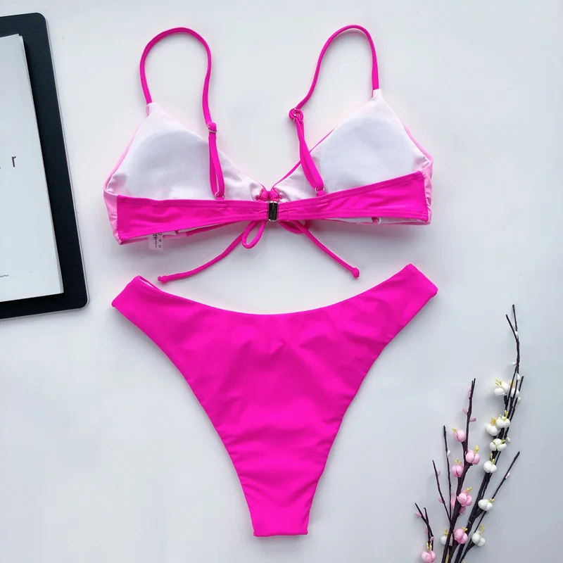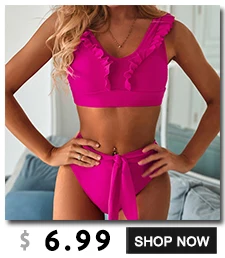 Solid Push Up Bikini Set Ruffle Swimsuit Tie-waist Biquini Bottom High Waist Swimwear High Cut Bathing Suit V-neck Swimming SuitBuy Now On Aliexpress