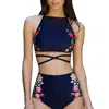 | Sexy Backless Bikini Set Women Lace Up Swimsuit Floral Print Swimwear Bikini 2020 Push Up Padded Bra Two Piece Bathing Suit |